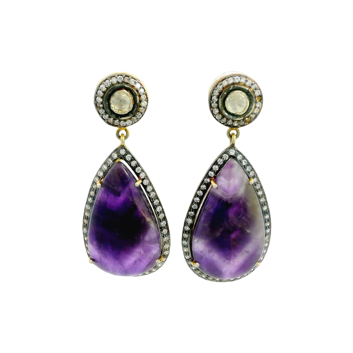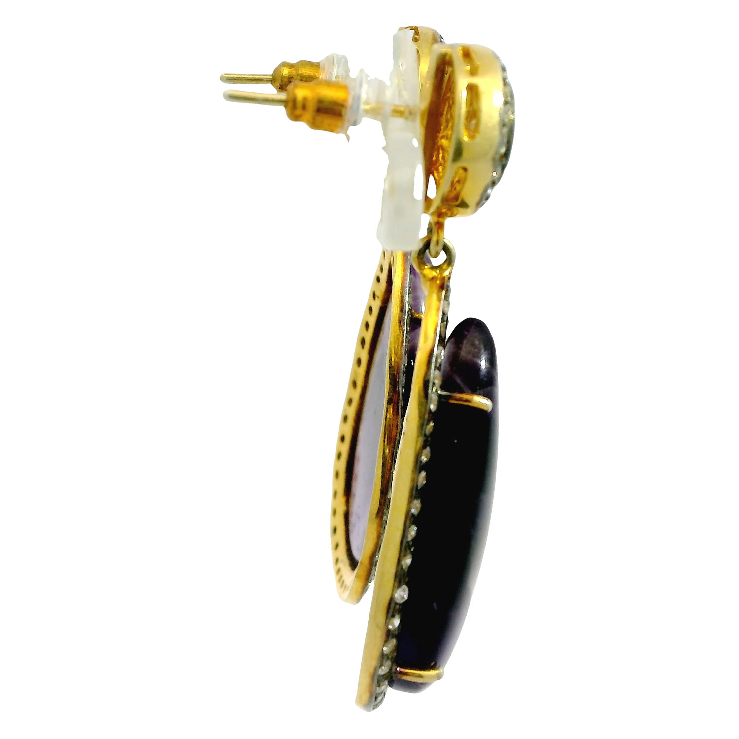 Gehna Jaipur Moissanite Stone & Amethyst gemstone studded earrings in 925 silver combine sparkling brilliance with regal purple. Designed to enhance feminine charm, these earrings are perfect for parties, weddings, and everyday elegance for girls and women.