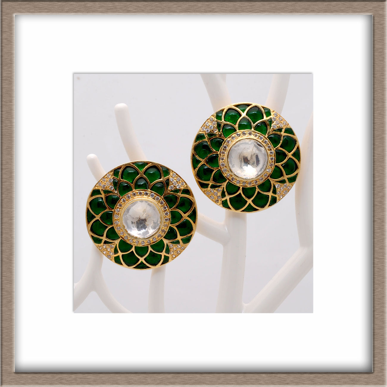Gehna Jaipur moissanite stone studded earrings in 925 sterling silver offer brilliant sparkle and timeless charm. Perfect for girls and women, these elegant earrings are ideal for special occasions or adding a touch of luxury to everyday wear with their radiant shine.