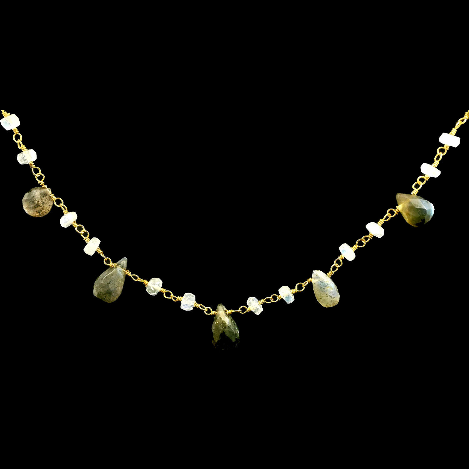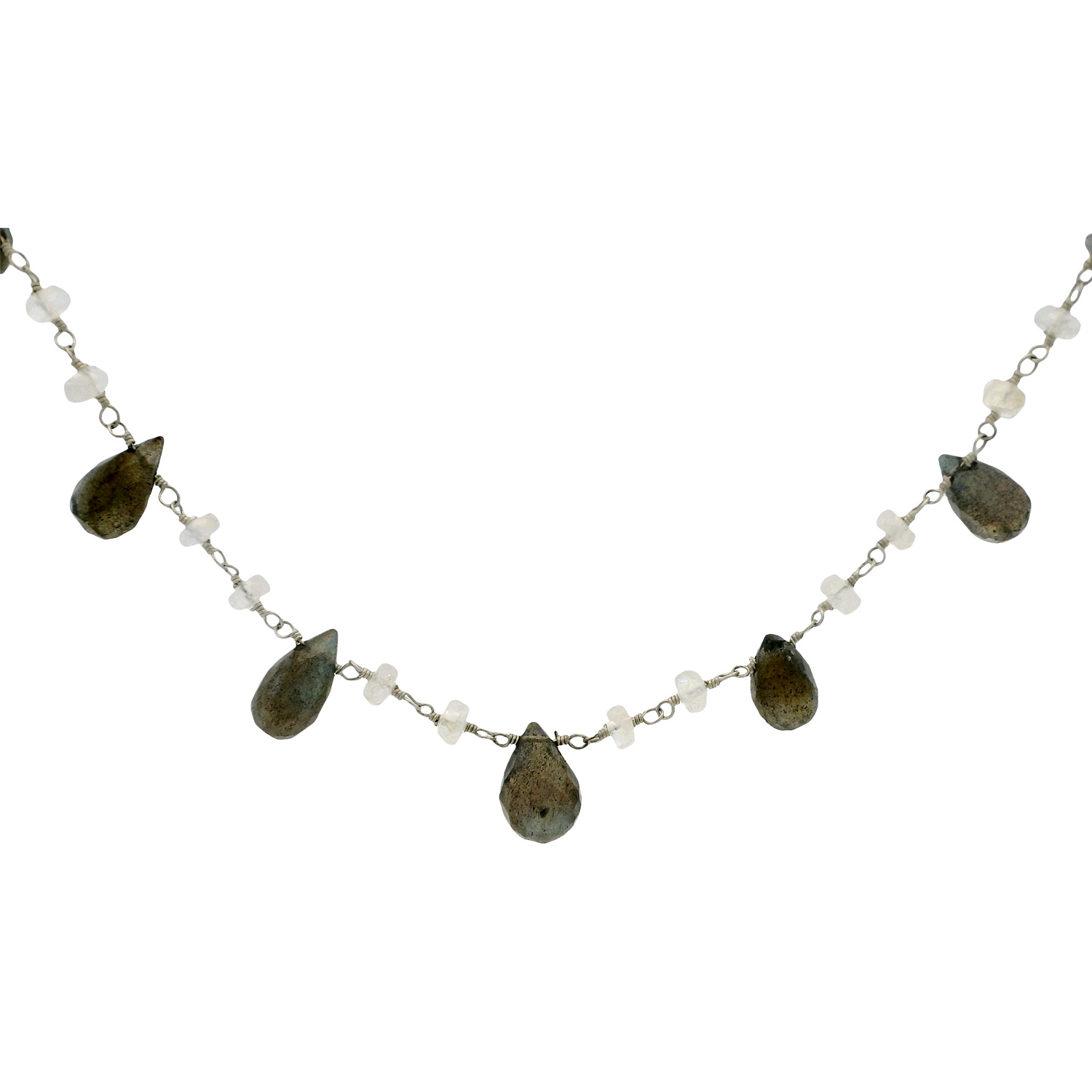 Gehna Jaipur multi color moonstone gemstone bead rosary necklace in .925 sterling silver. A charming and versatile accessory featuring luminous moonstone hues, perfect for women who appreciate natural elegance and unique jewelry.