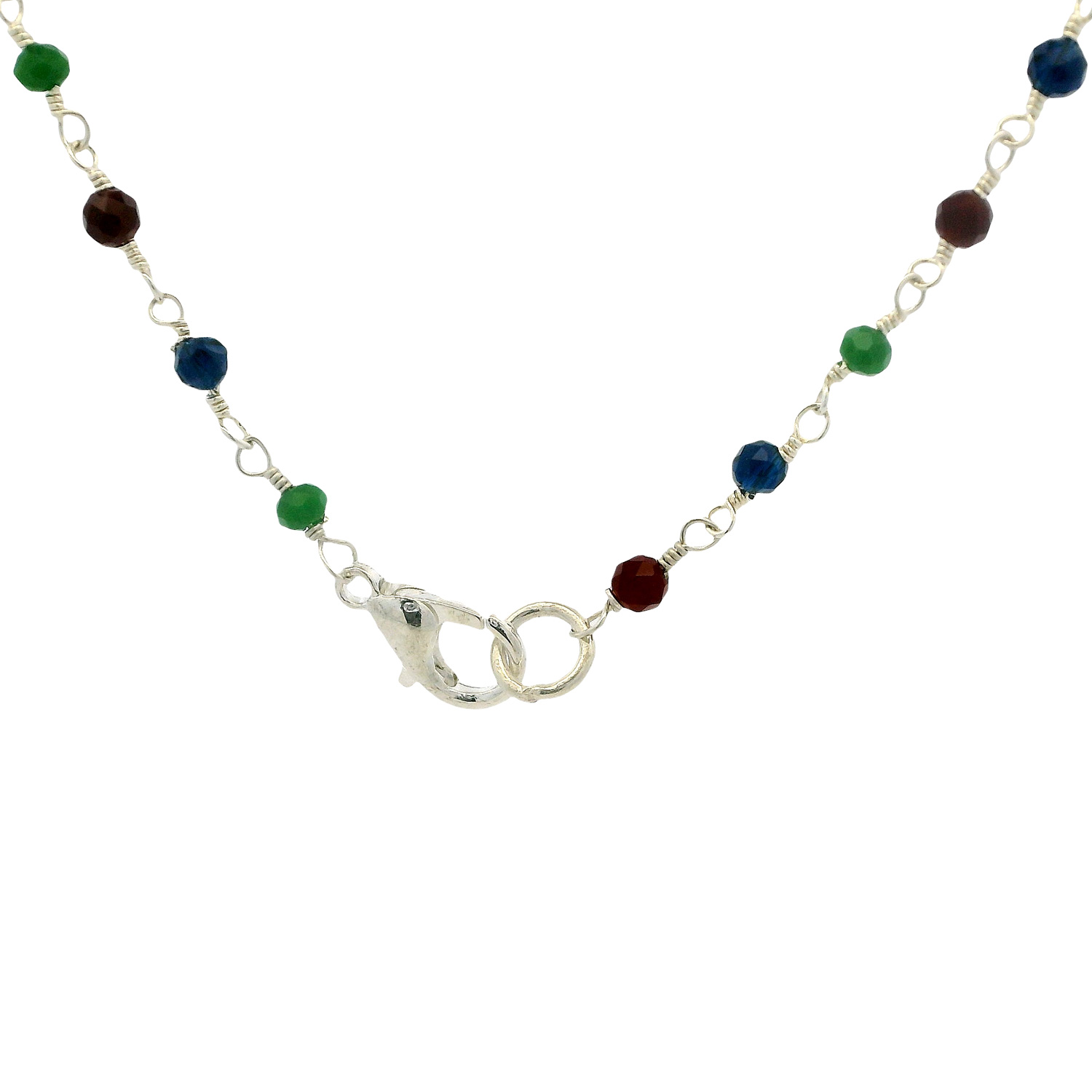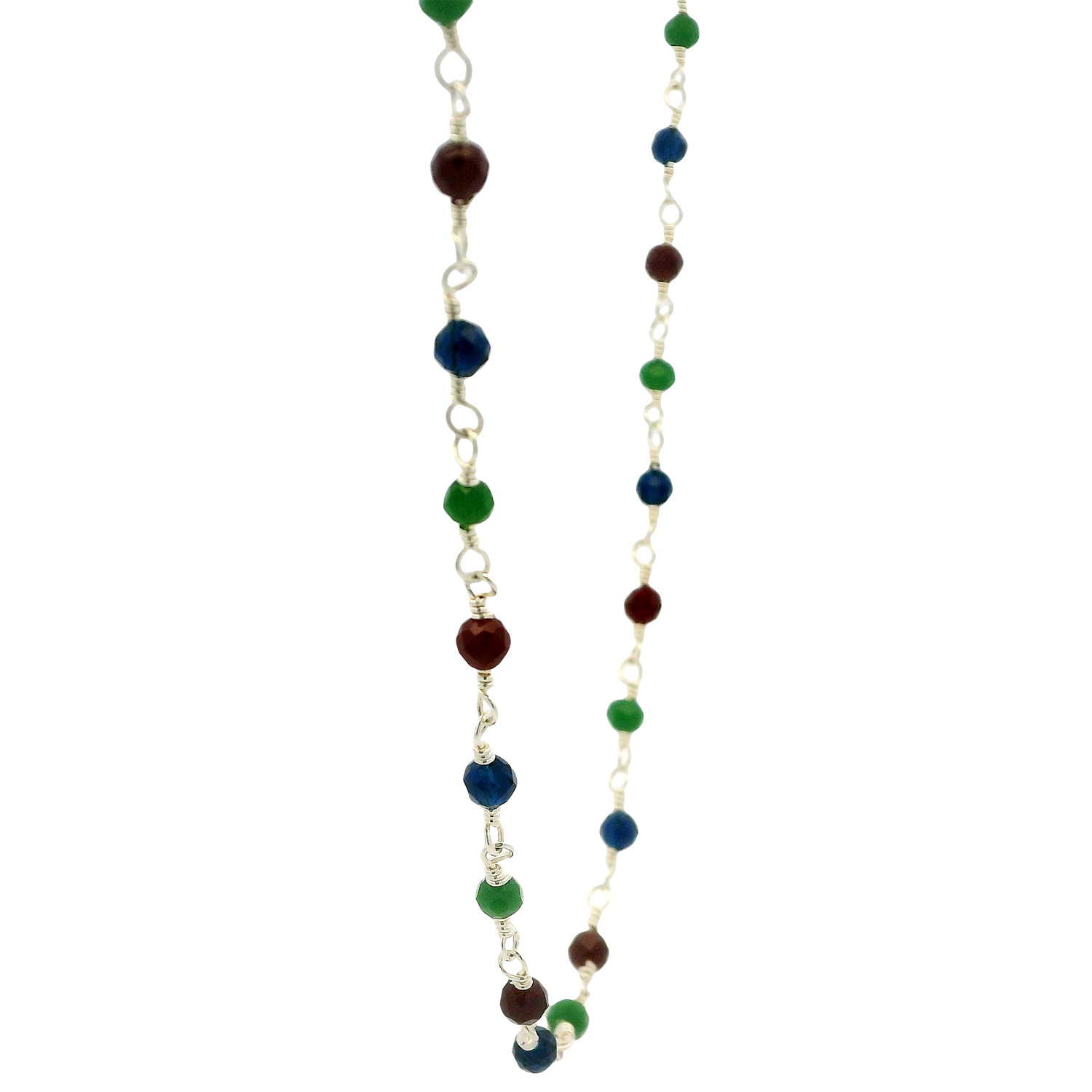 Gehna Jaipur Multicolor Zirconia Beads Rosary Chain Silver Rhodium Plating For Girls & Women CC-1215