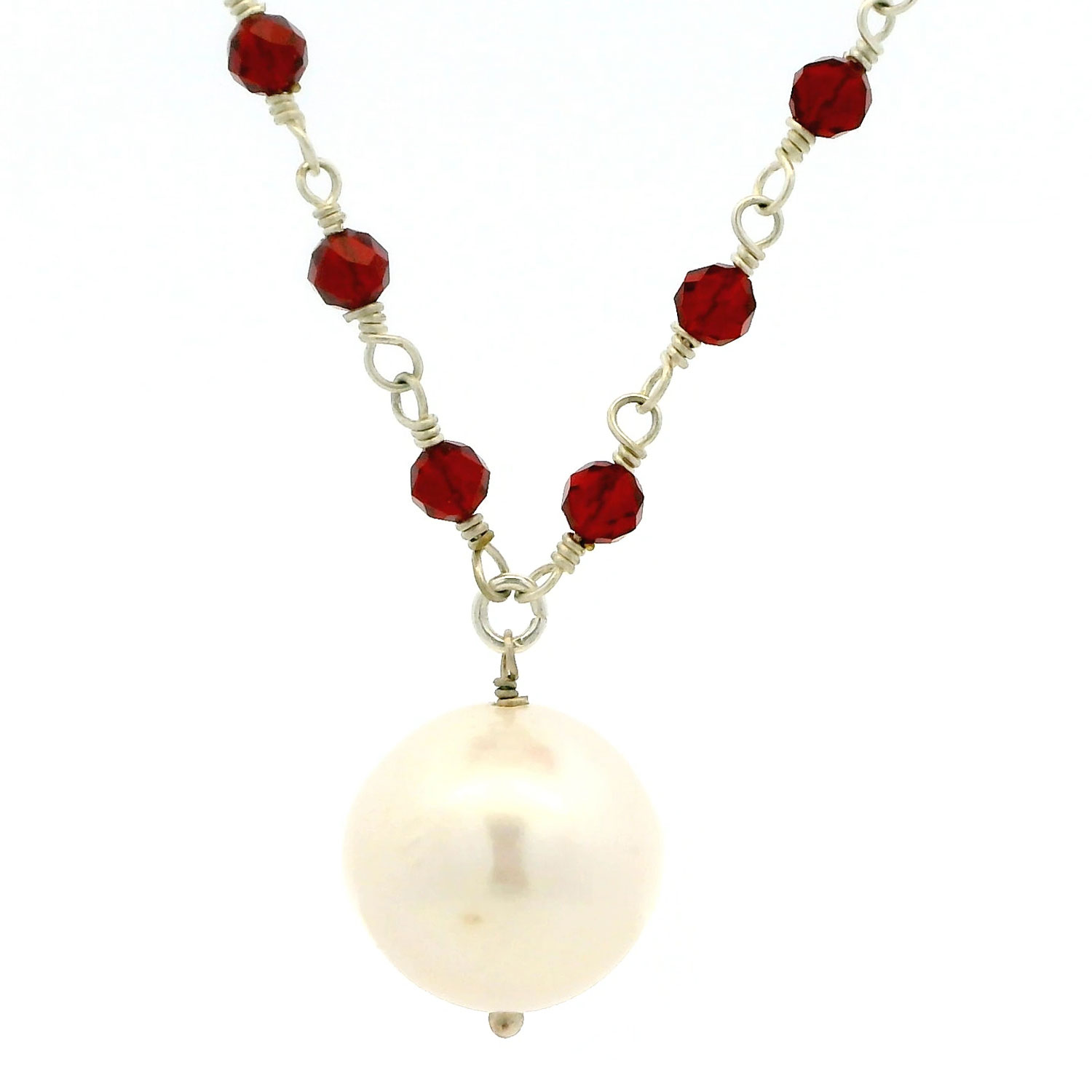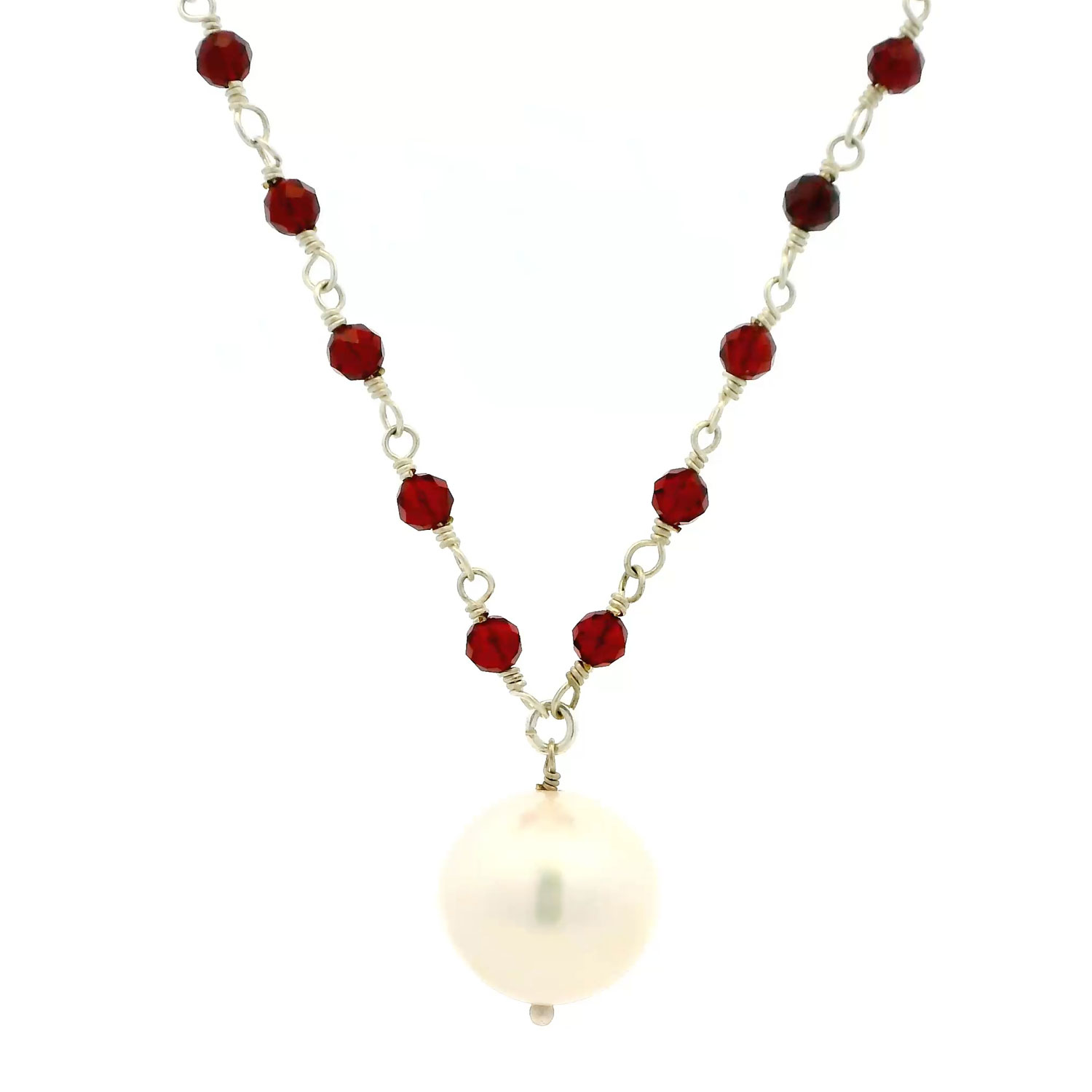 Gehna Jaipur Natural Pearl & Ruby Gemstone Faceted Beads Necklace Made In Silver For Girls & Women CM-1165
