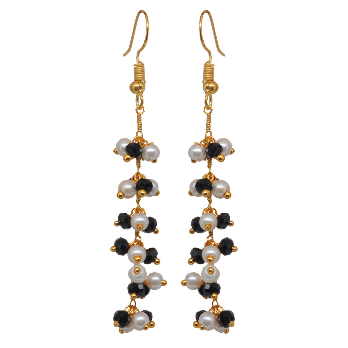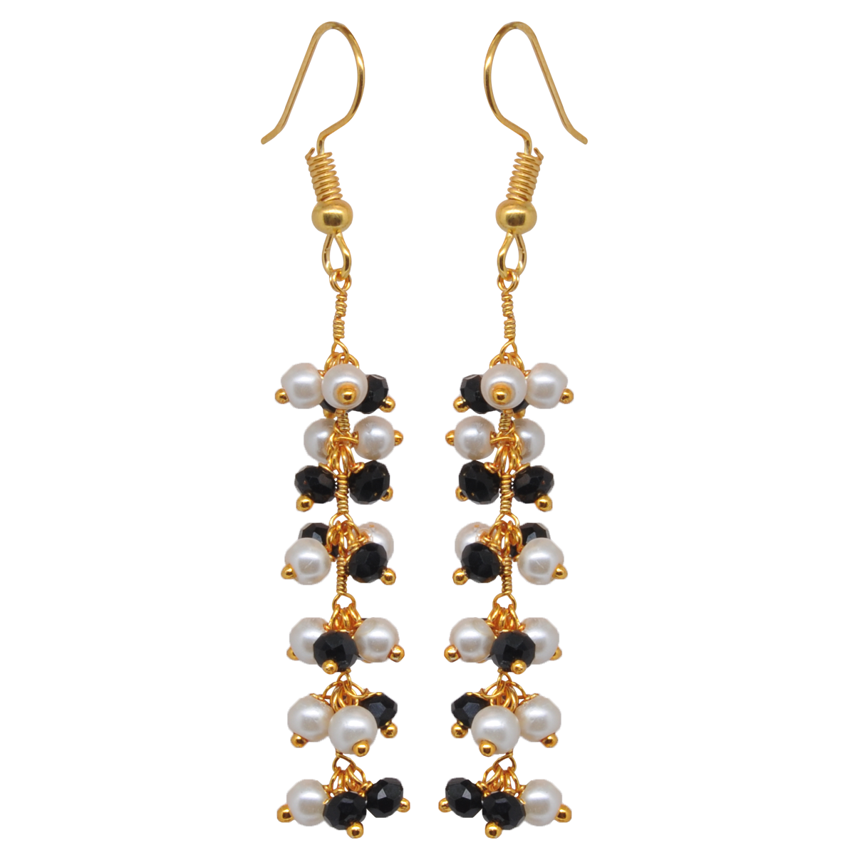 Gehna Jaipur Pearl & Black Onyx Zircon Beads Dangle Style Earrings For Girls & Women CE-1131