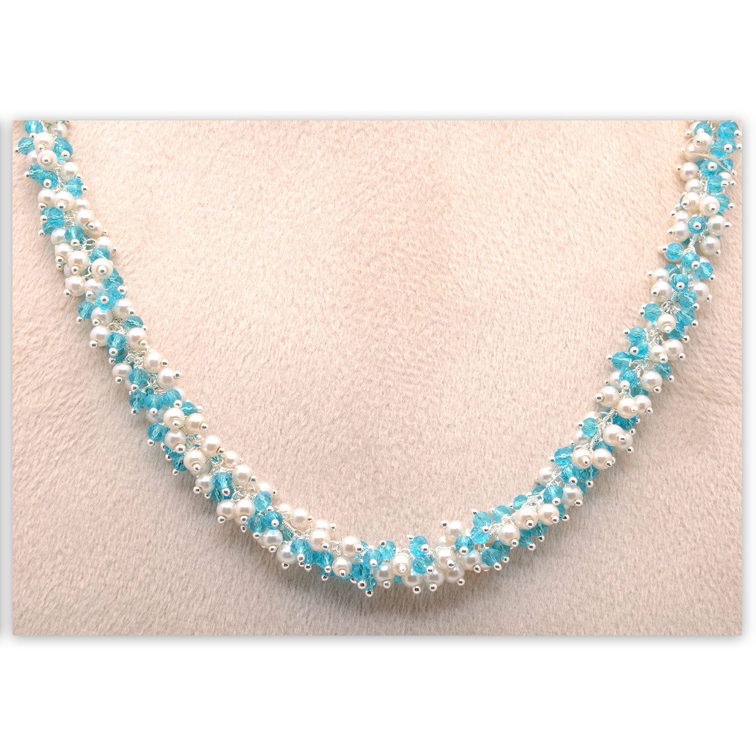 Gehna Jaipur Pearl & Blue Topaz Color Zirconia Beads Necklace Set For Girls & Women CC-1208