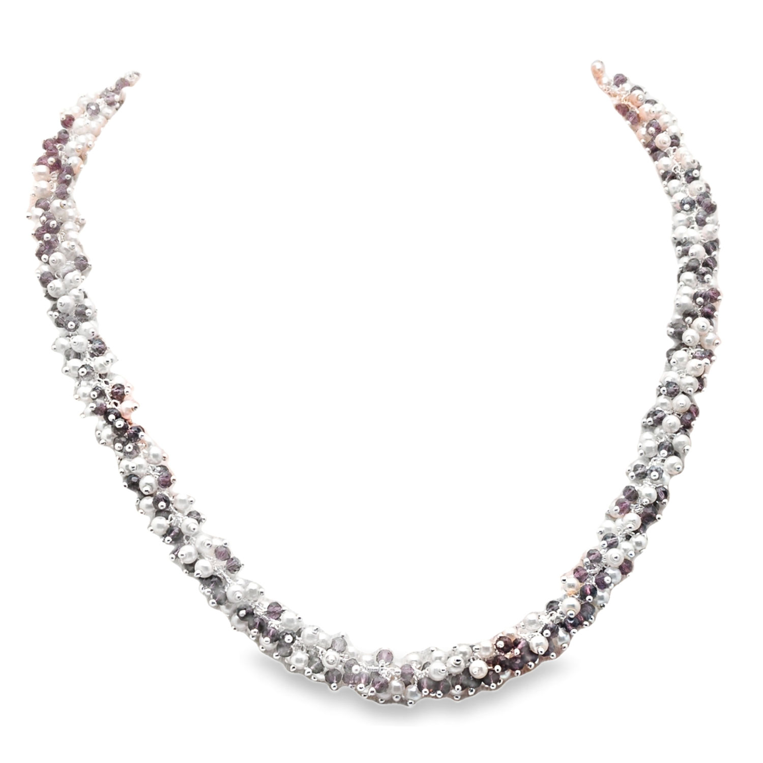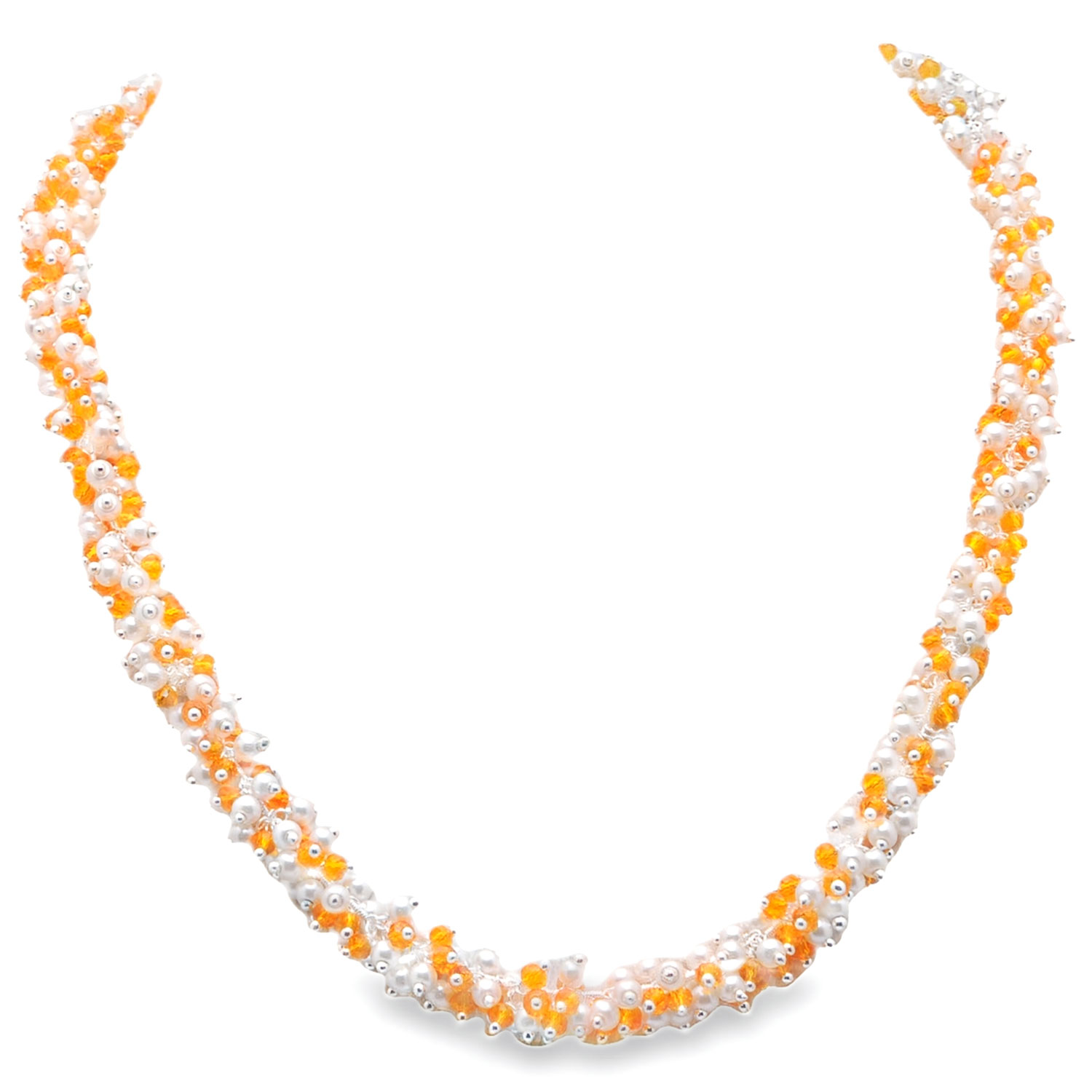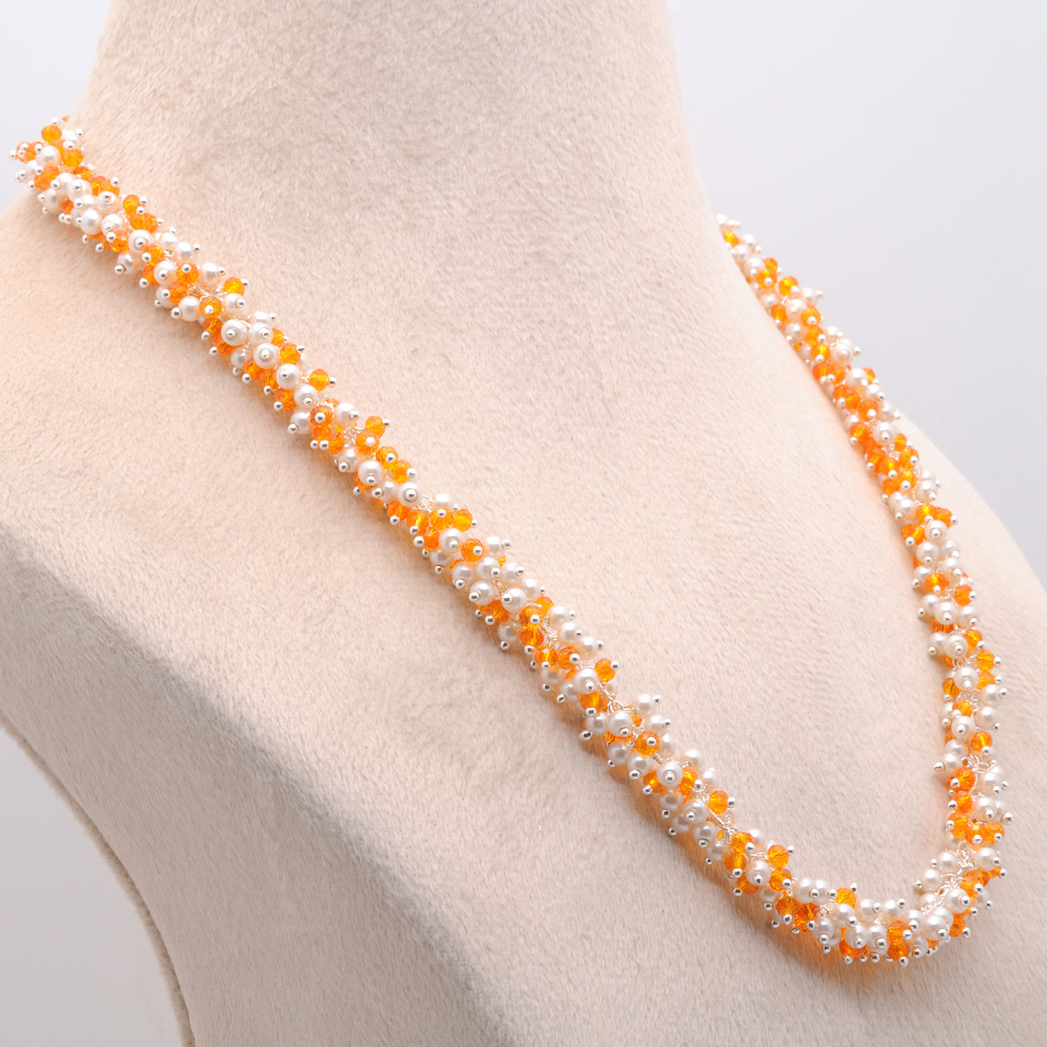 Gehna Jaipur Pearl & Mandarin Garnet Color Zirconia Beads Necklace Set For Girls & Women CC-1211