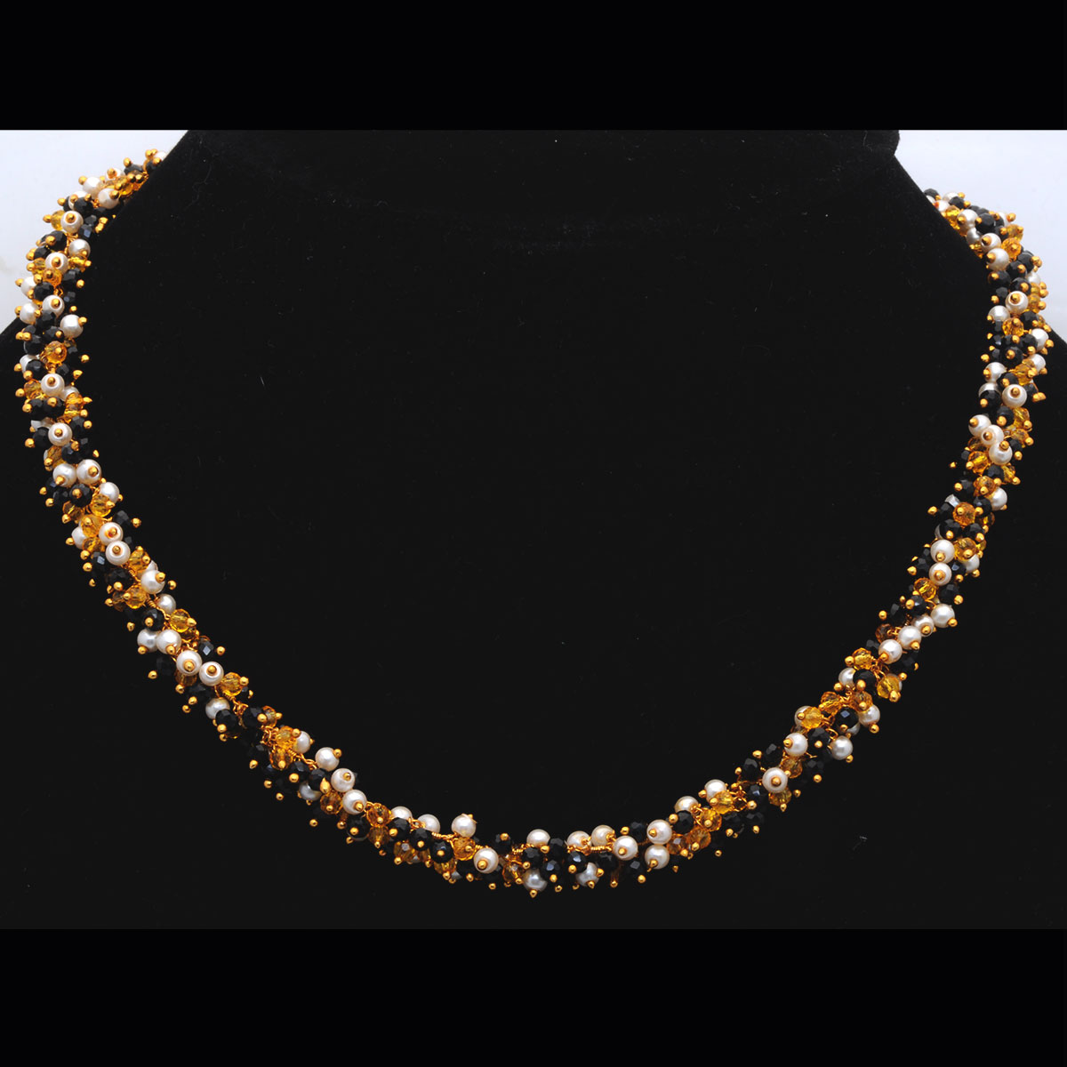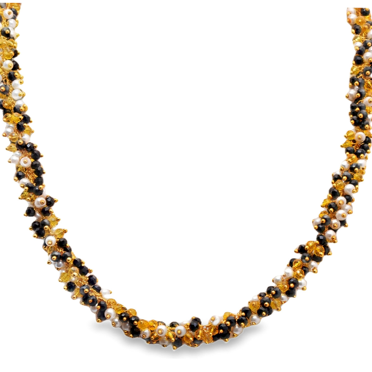 Gehna Jaipur Pearl & Multicolor Zirconia Color Zirconia Bead Necklace In Yellow Gold For Girls & Women CC-1157