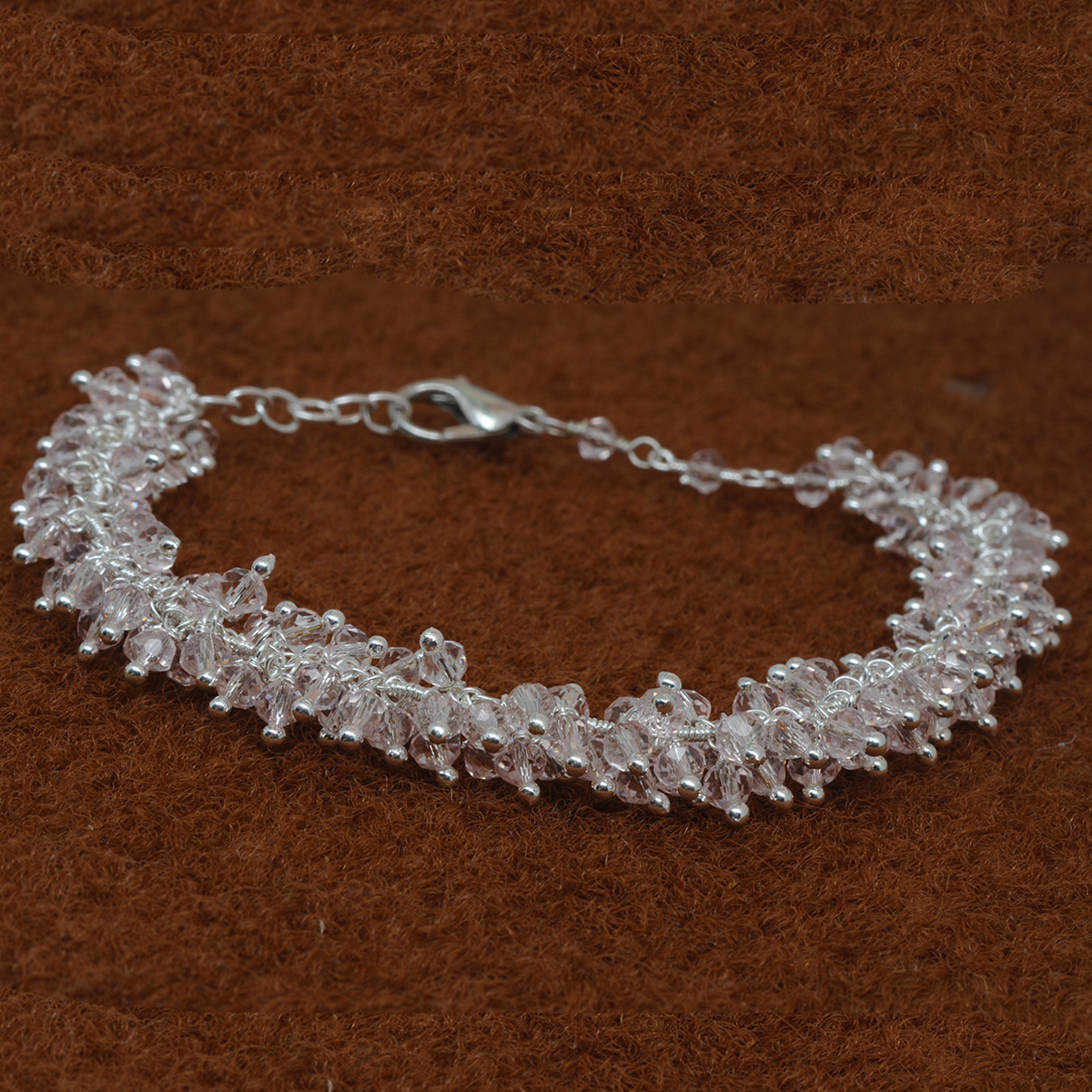 Gehna Jaipur Pink Aquamarine Zircon Beads Bracelet In Silver With Fish Clasp For Girls & Women CB-1026