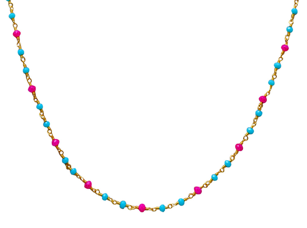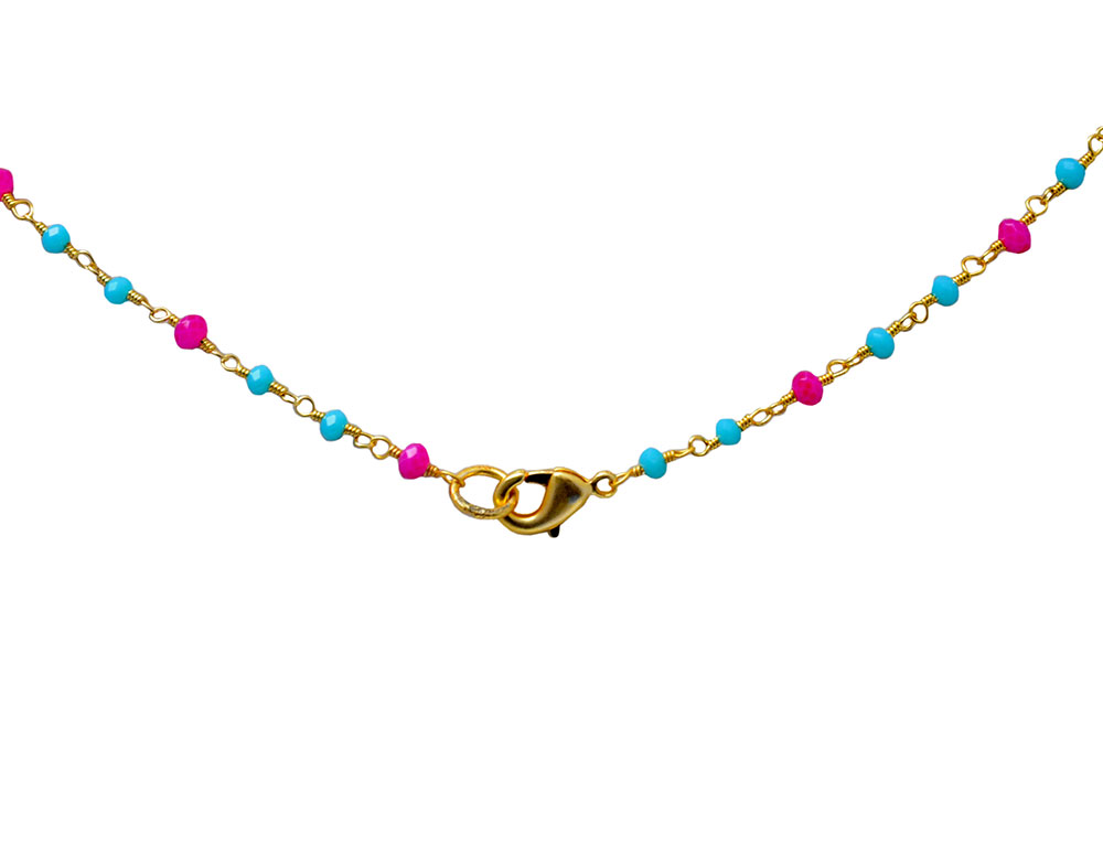 Gehna Jaipur Pink & Blue Chalcedony Stone Color Zirconia Faceted Beads Rosary Chain For Girls & Women CC-1030