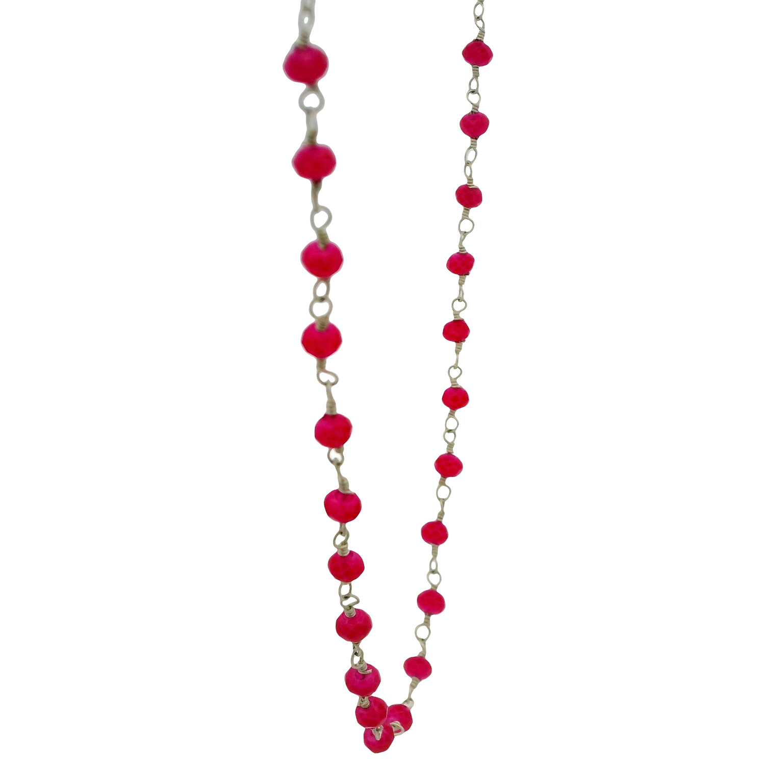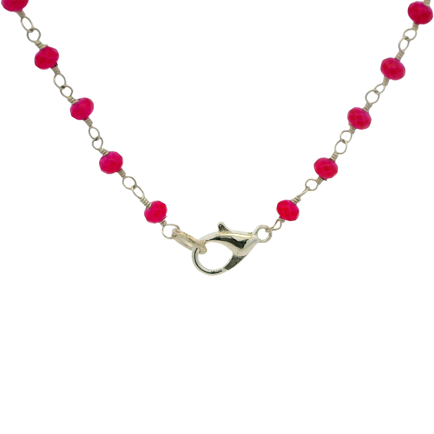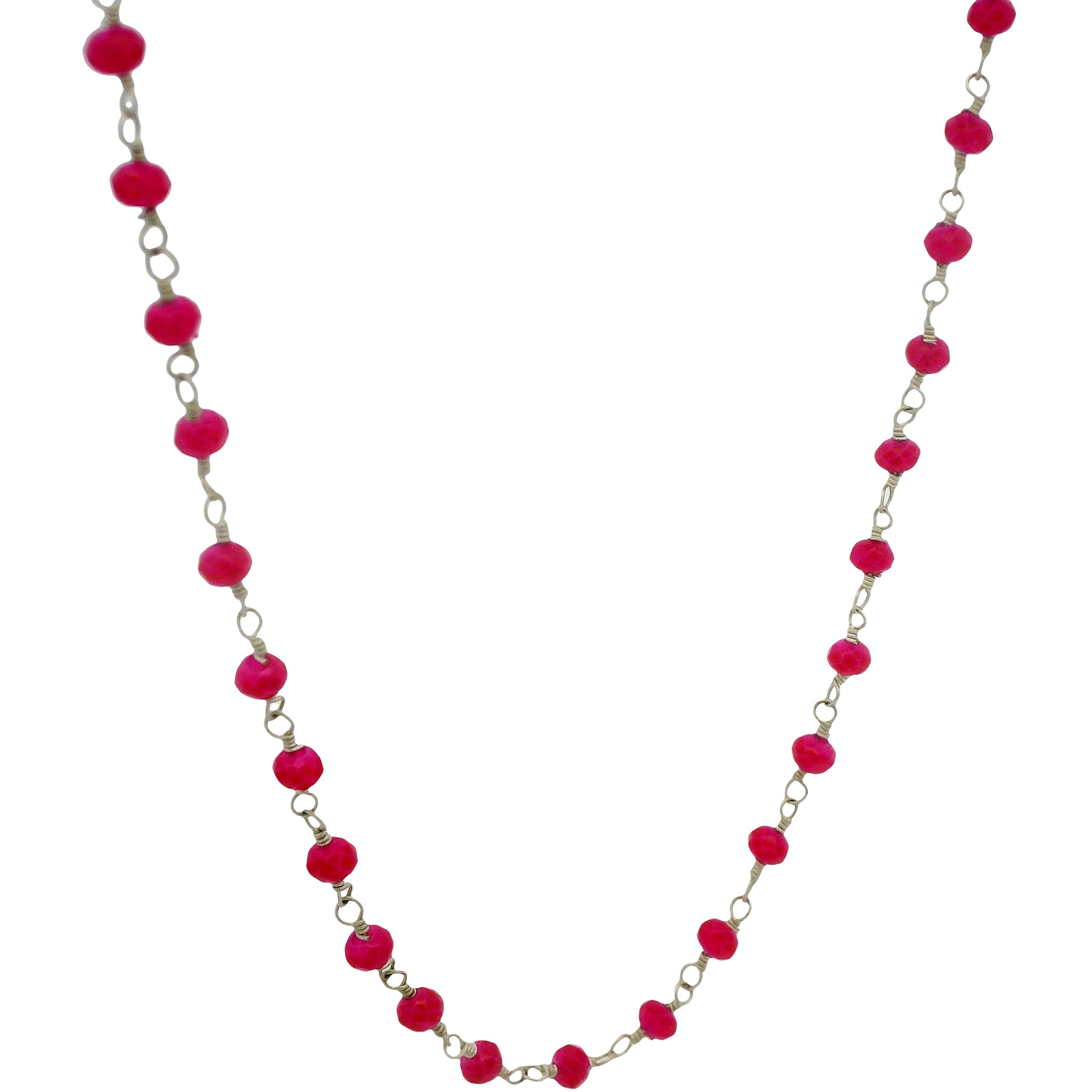 Gehna Jaipur Pink Chalcedony Color Cubic Zirconia Beads Necklace (Silver) For Girls & Women CC-1018