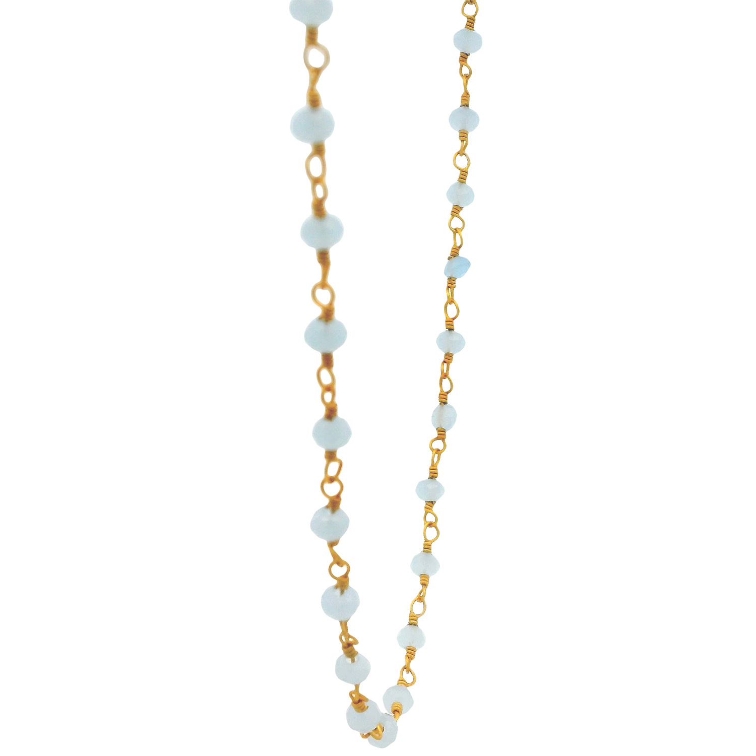 Gehna Jaipur Blue Chalcedony Color Cubic Zirconia Beads Rosary Chain (Gold Plated) brings serene beauty and golden luxury together.