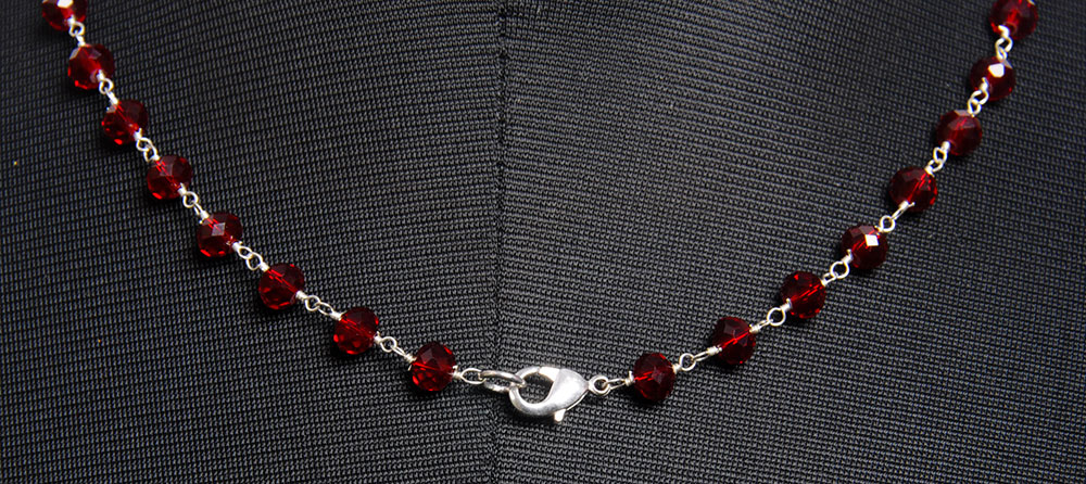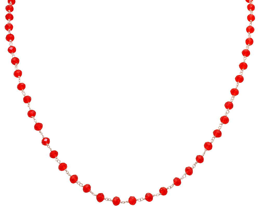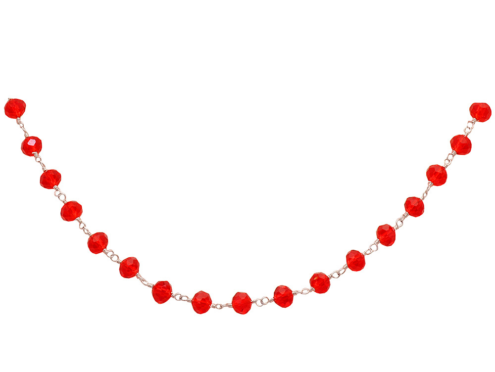 Gehna Jaipur Red Garnet Color Zirconia Beads Silver Rhodium Plated Rosary Chain For Girls & Women CC-1006