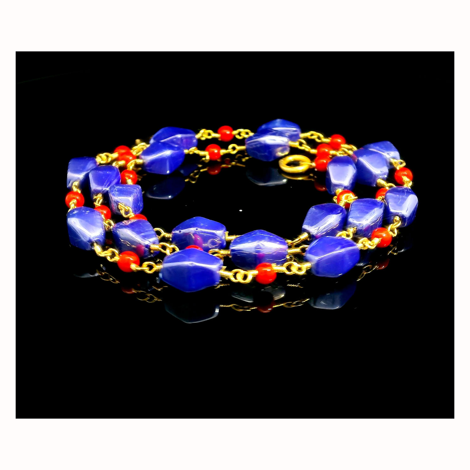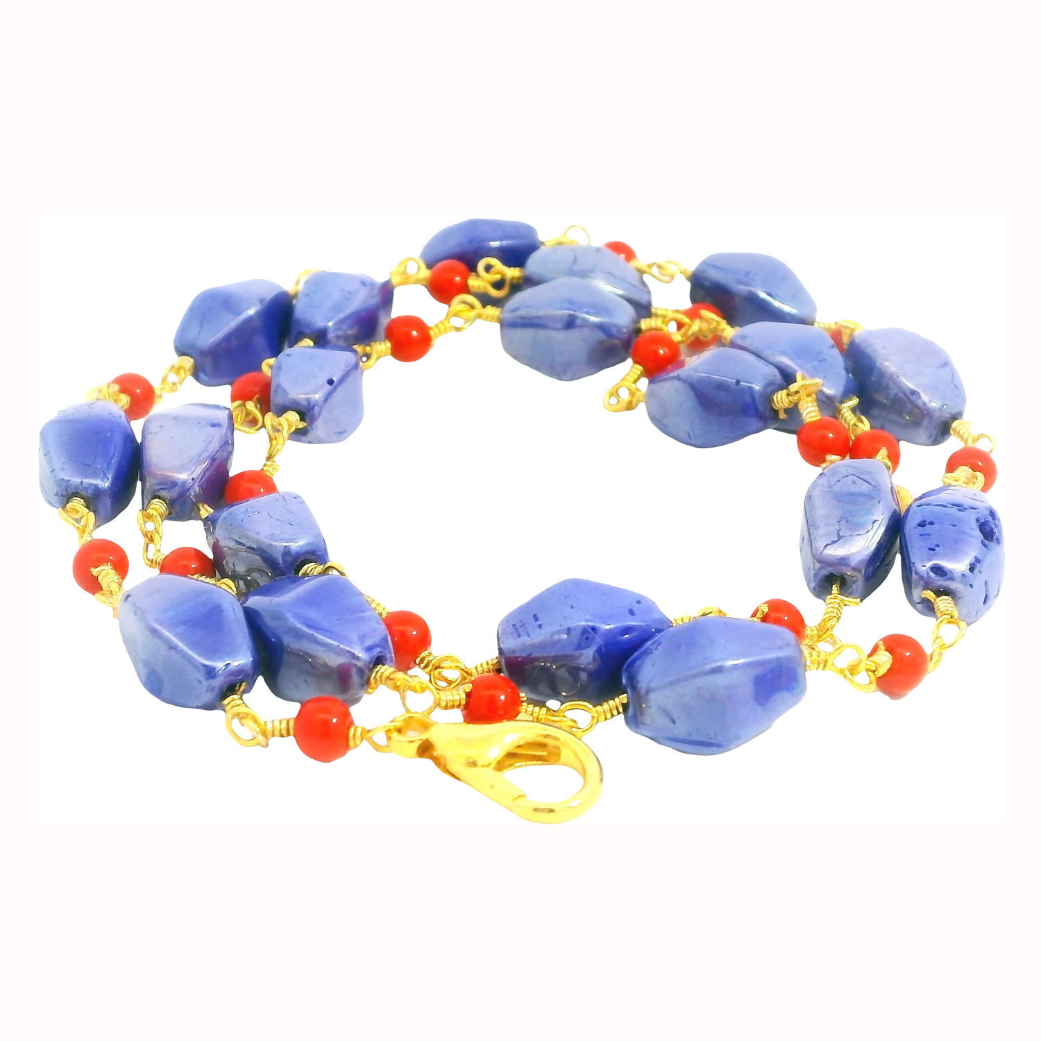 Gehna Jaipur Red Jasper & Lapis Lazuli Gemstone Chain In .925 Sterling Silver Gold Finish For Girls & Women CS-1235
