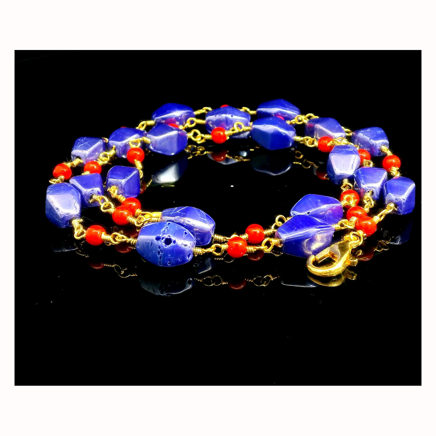 Gehna Jaipur red jasper and lapis lazuli gemstone chain in .925 sterling silver with gold finish. A vibrant jewelry piece combining earthy red jasper with rich blue lapis, ideal for adding color and elegance to your look.