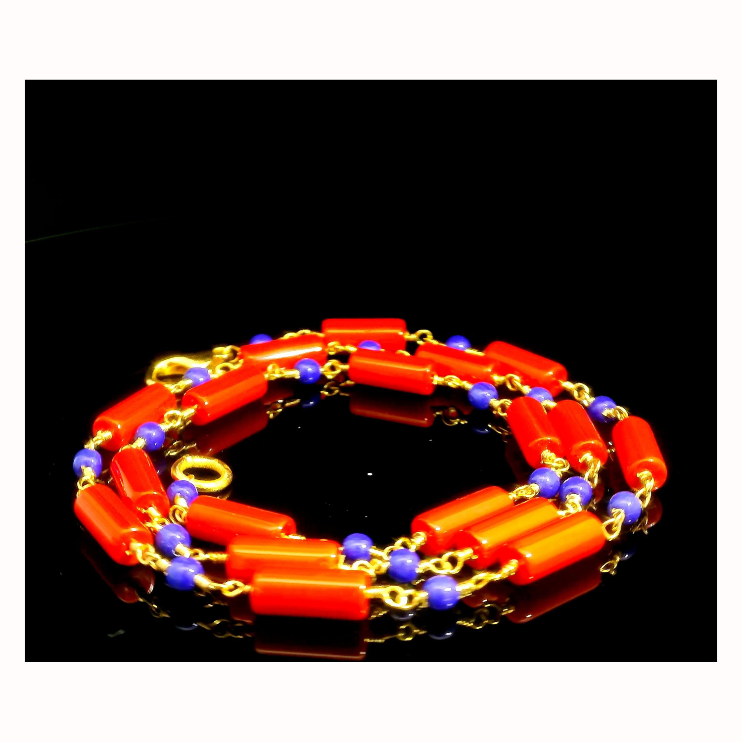 Gehna Jaipur Red Jasper & Lapis Lazuli Gemstone Chain In .925 Sterling Silver Gold Finish For Girls & Women CS-1236