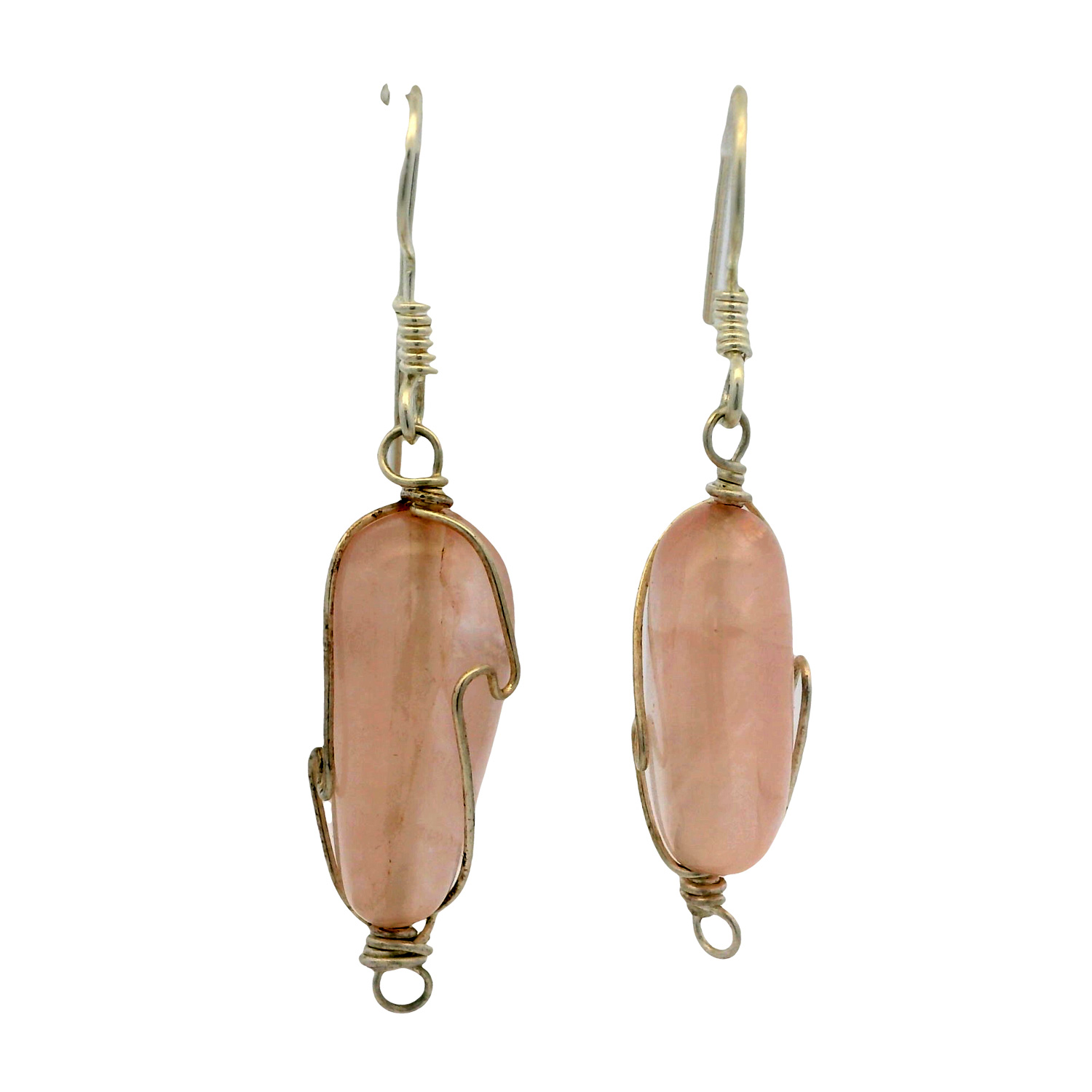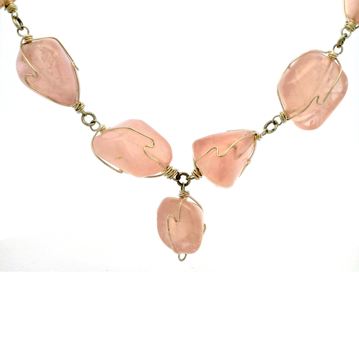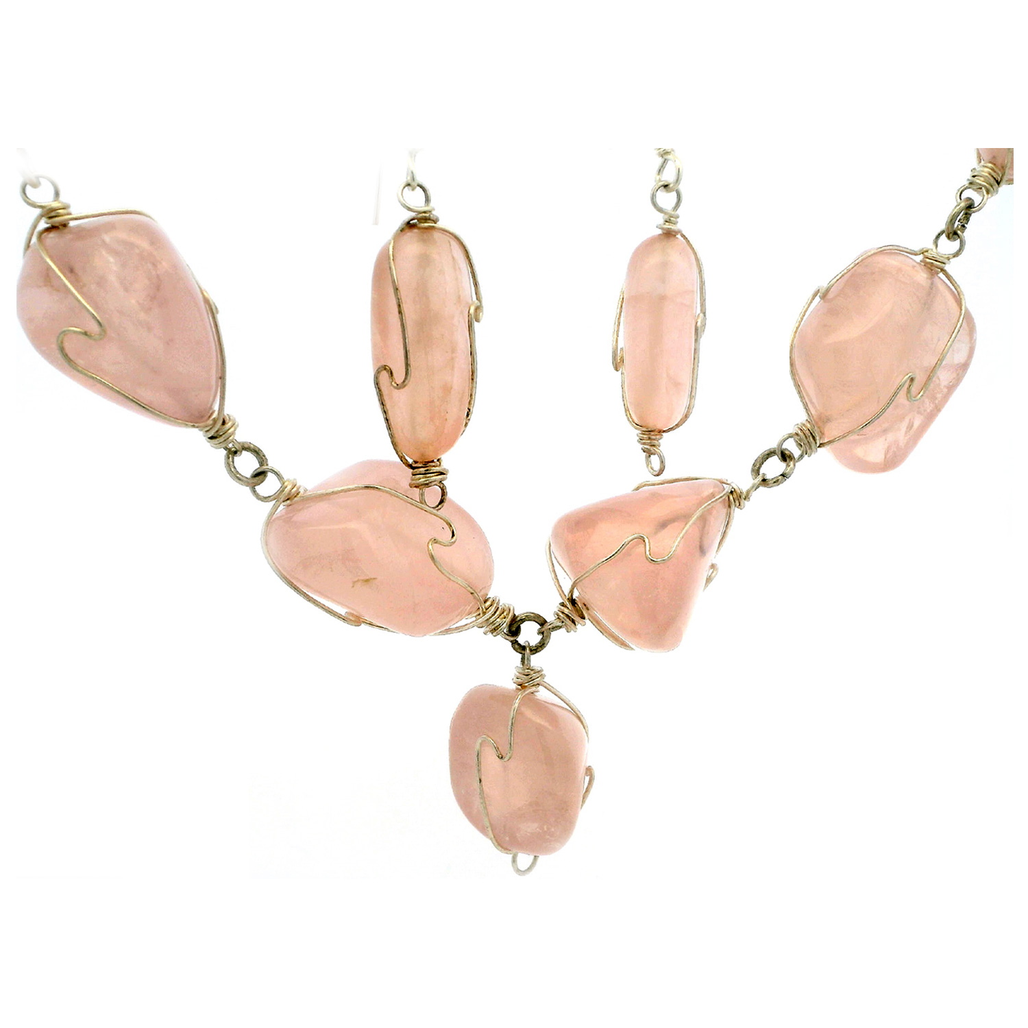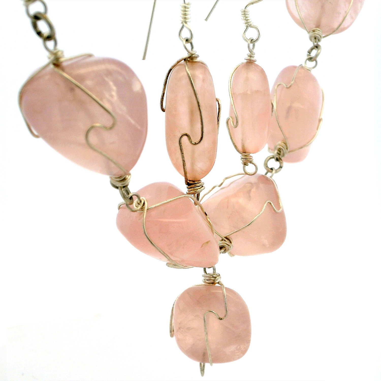 Gehna Jaipur Rose Quartz Gemstone Bead Necklace & Earring Set In .925 Sterling Silver For Girls & Women CS-1222