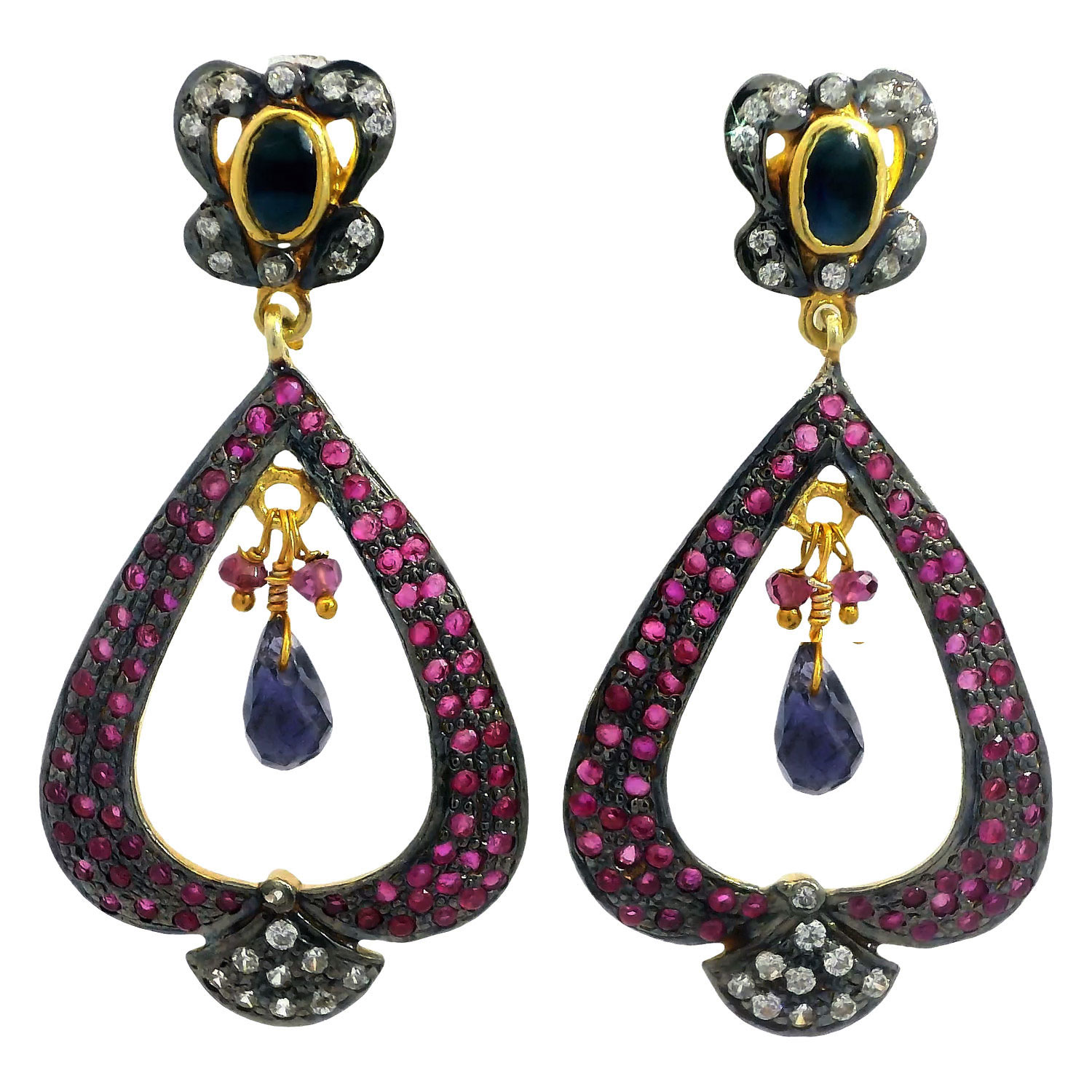 Gehna Jaipur Ruby & Blue Sapphire Gemstone Studded 925 Sterling Silver Earring For Girls & Women SE01-1098