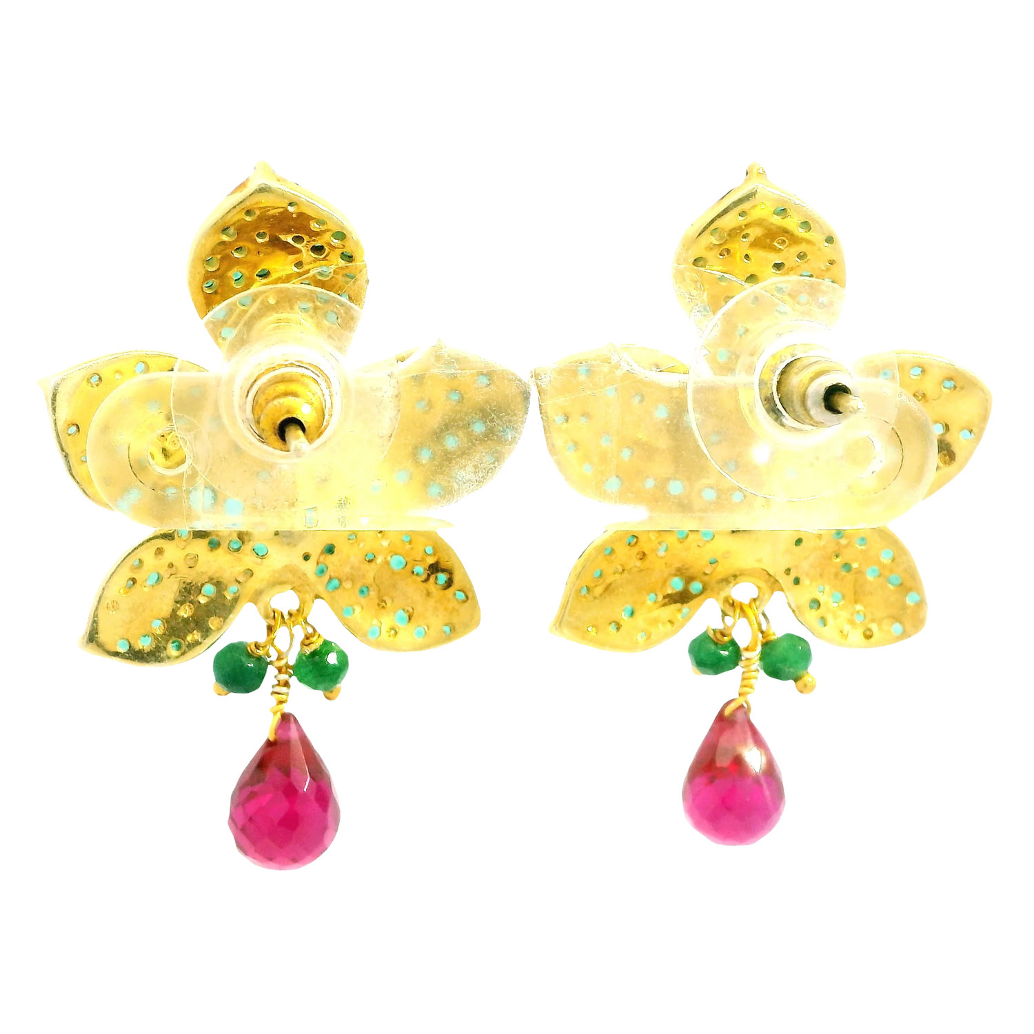 Gehna Jaipur Ruby & Emerald Gemstone Studded Flower Shape Earrings In Sterling Silver For Girls & Women SE01-1097