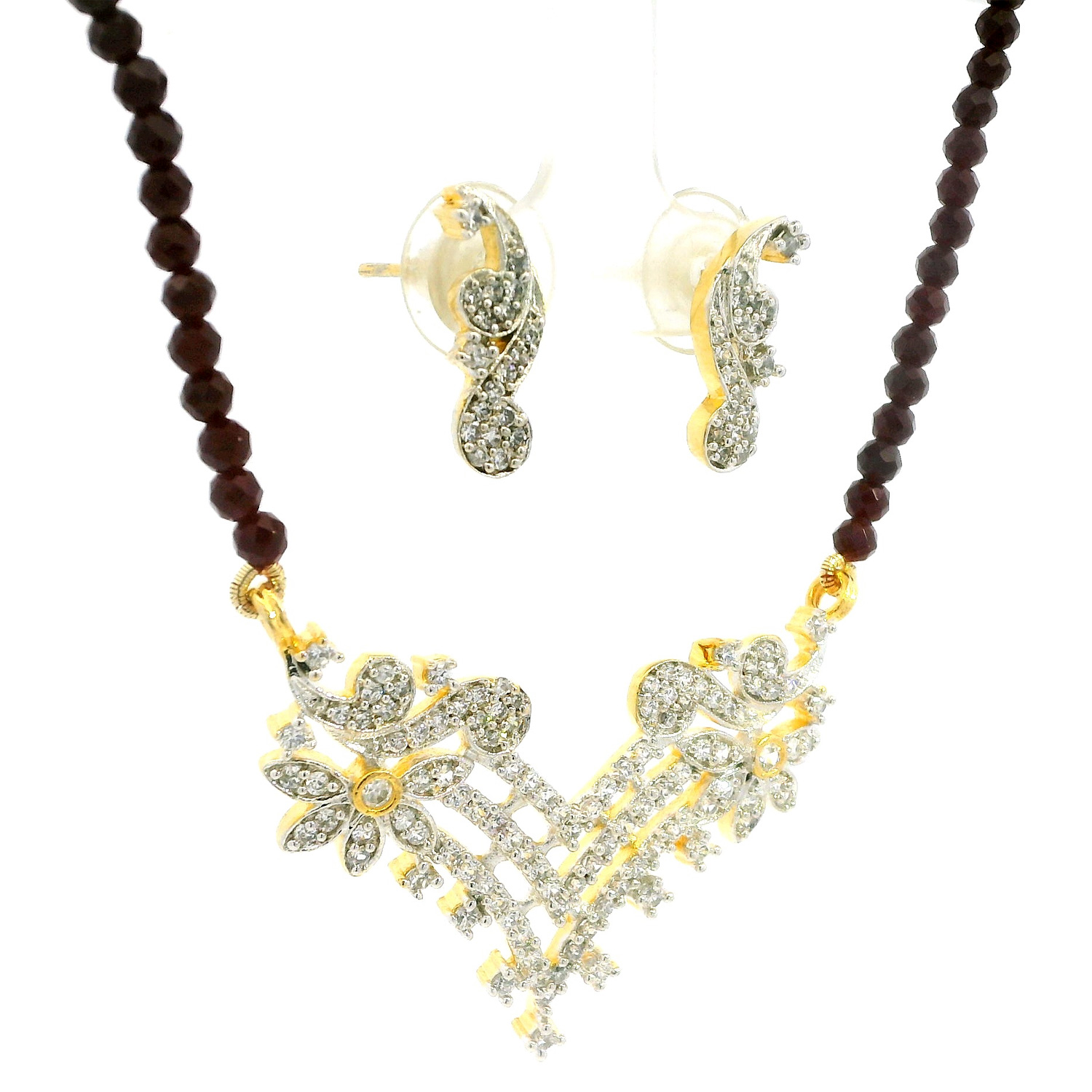 Gehna Jaipur Ruby Faceted Bead With Tanmaniya Pendant & Earring Set For Girls & Women FN-1109