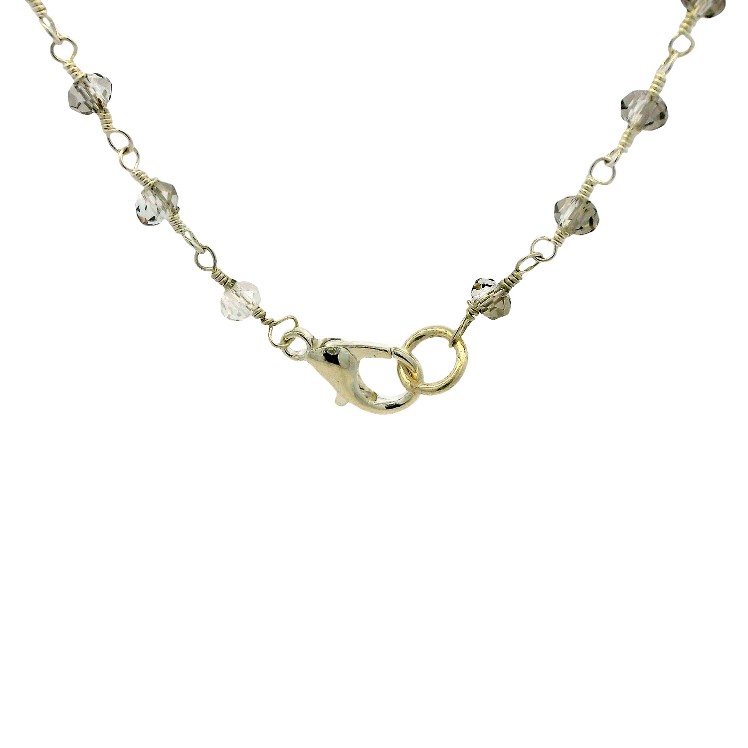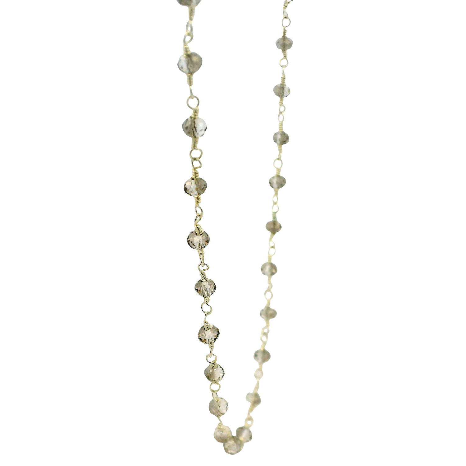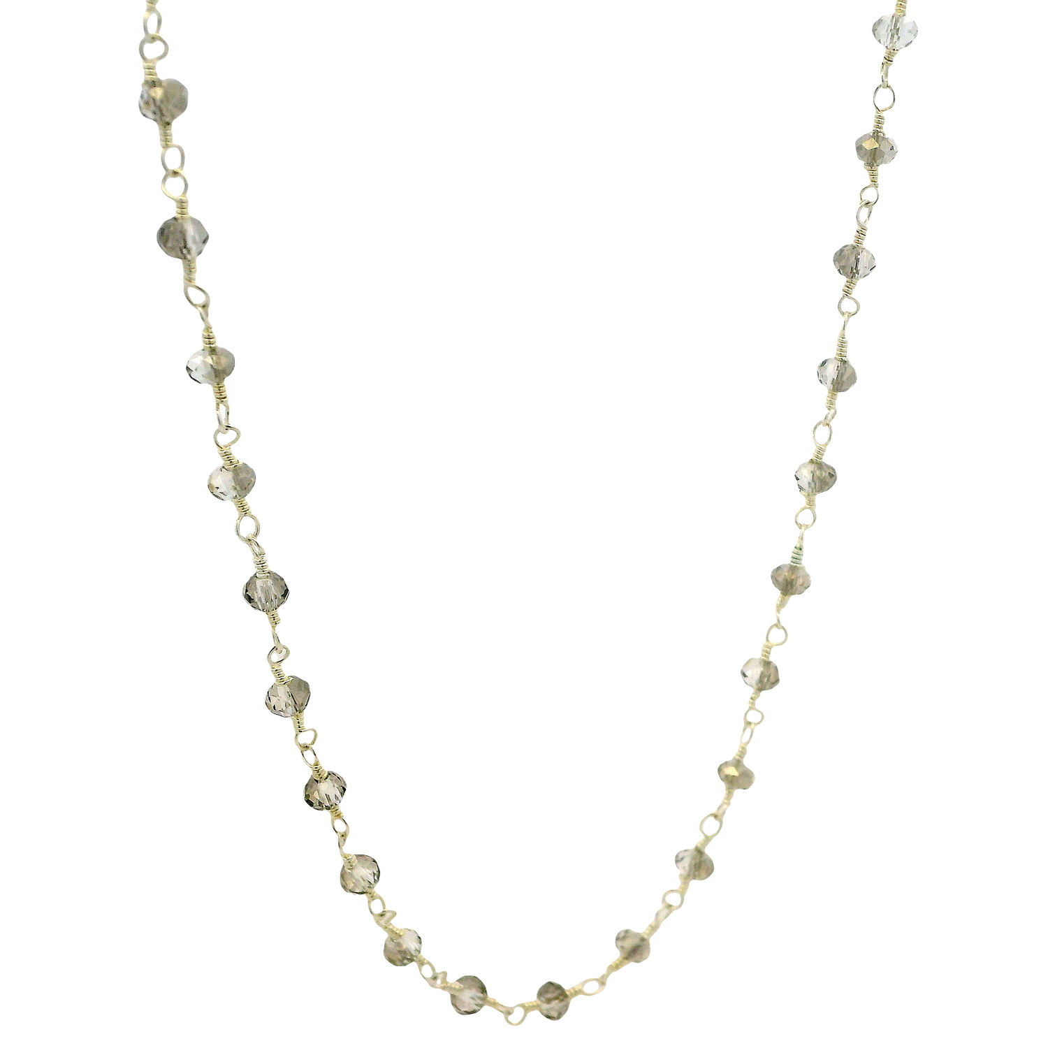 The Rutile Quartz Color Cubic Zirconia Beads Necklace from Gehna Jaipur in silver reflects golden inclusions for a mystical, elegant look.