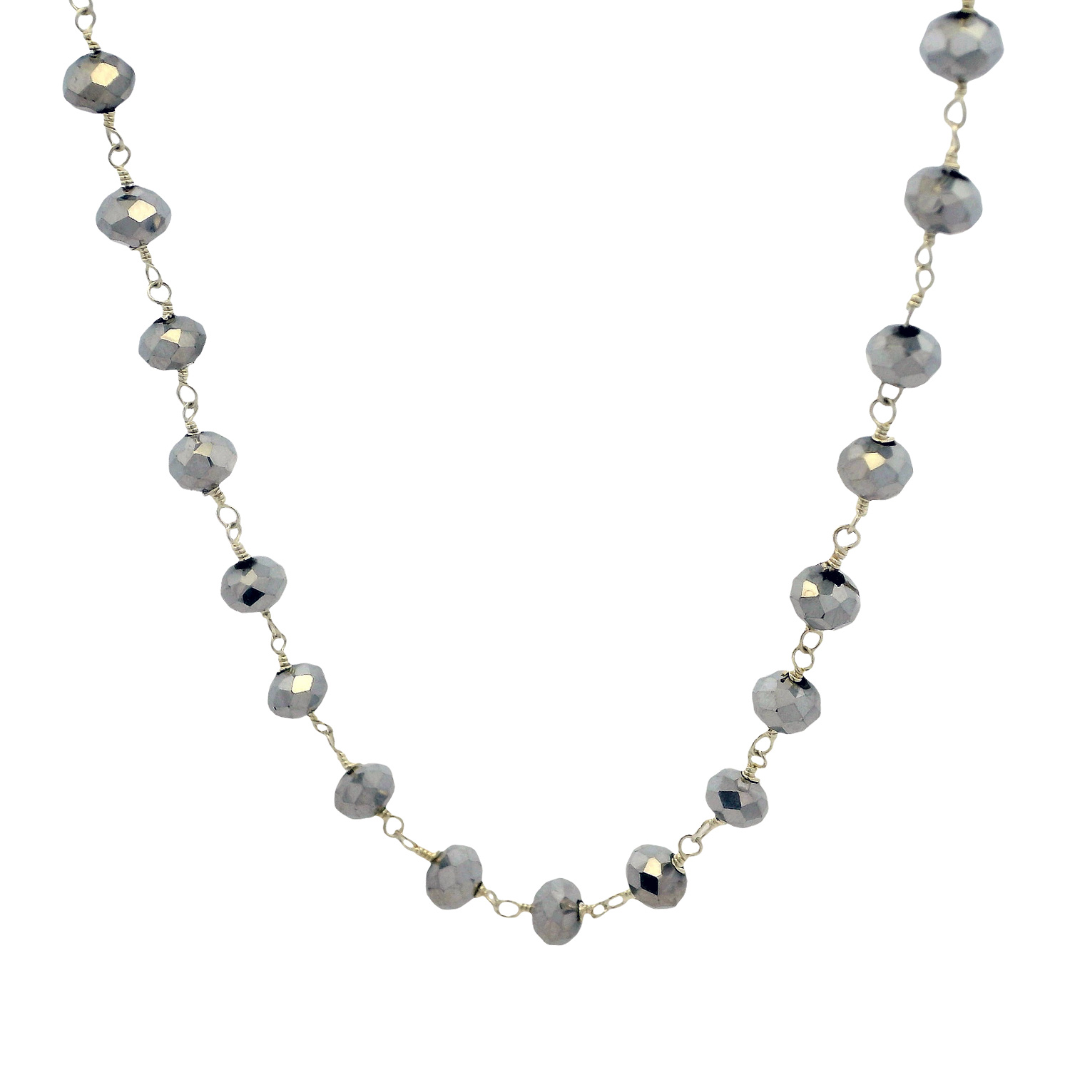 Gehna Jaipur Silver Pyrite Color Cubic Zirconia Beads Necklace (Silver) For Girls & Women CC-1009