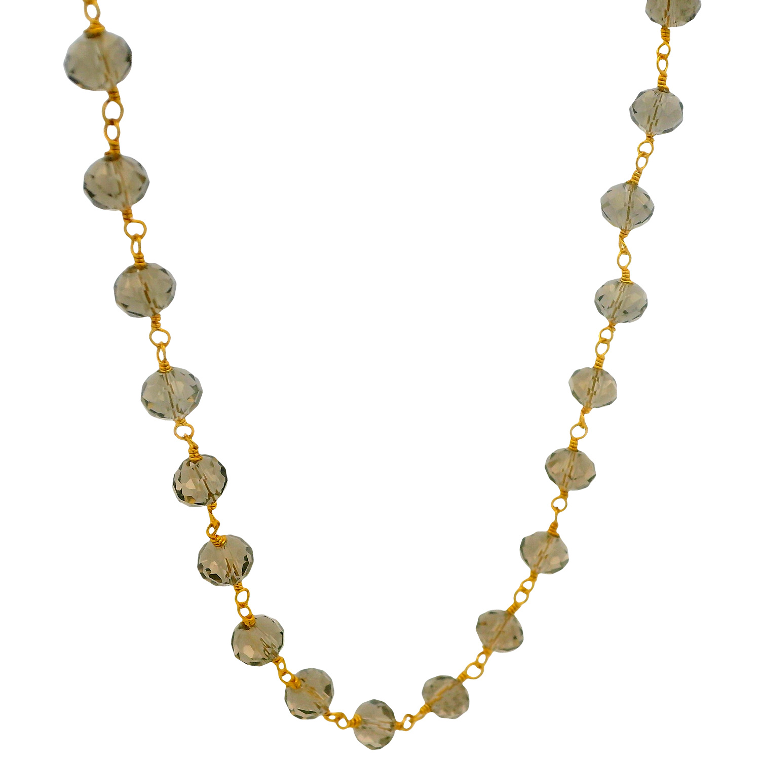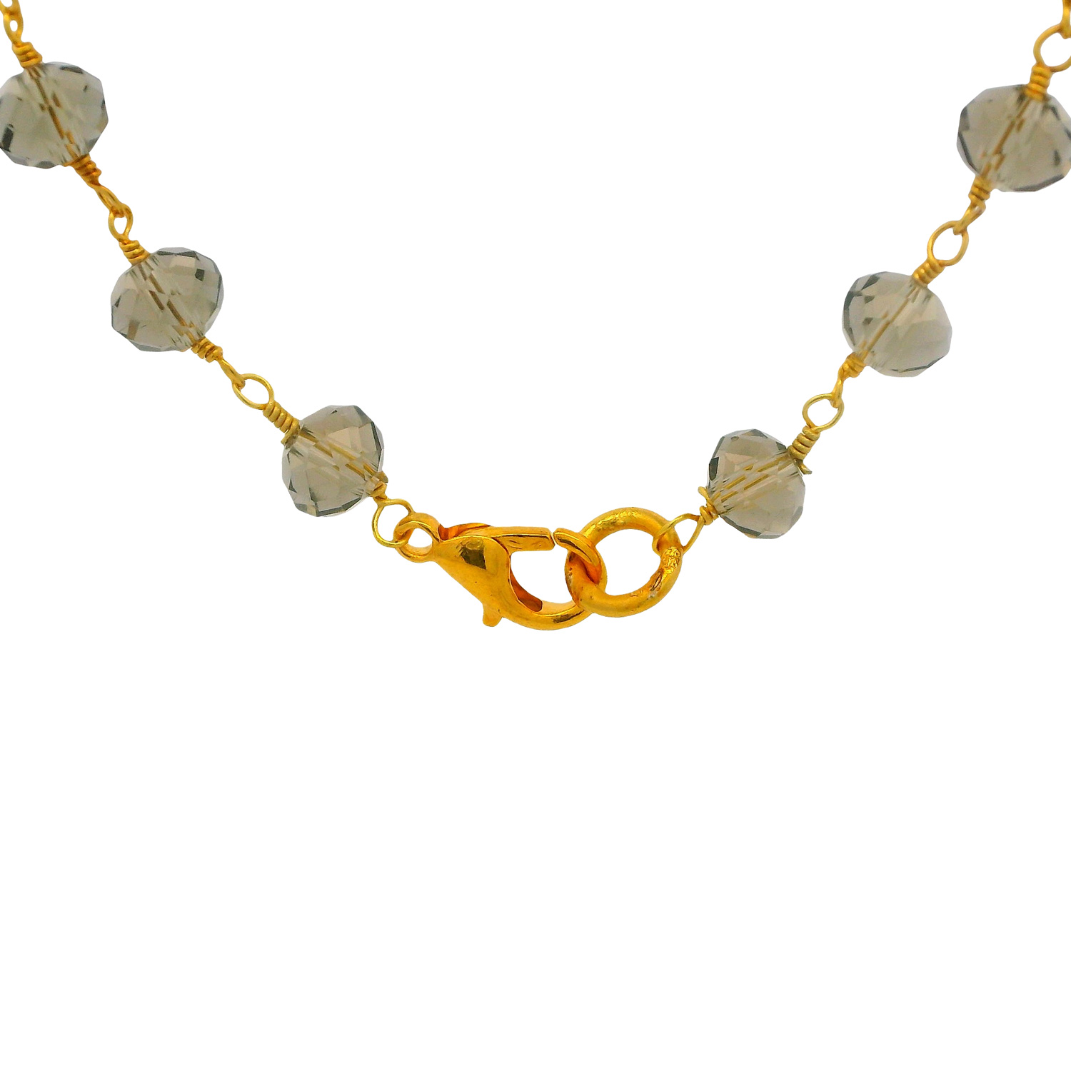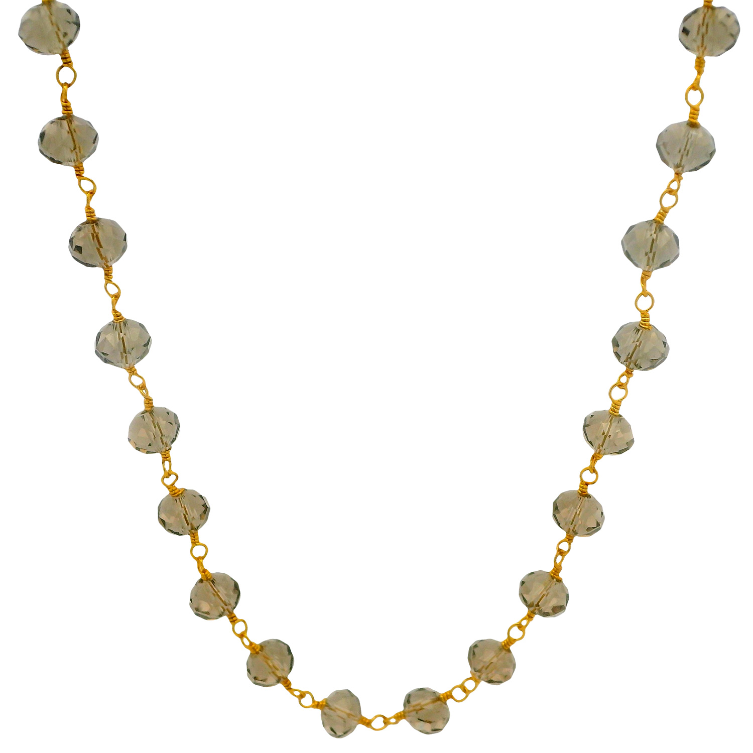 Gehna Jaipur Smoky Quartz Color Cubic Zirconia Beads Necklace (Gold Plated) For Girls & Women CC-1054