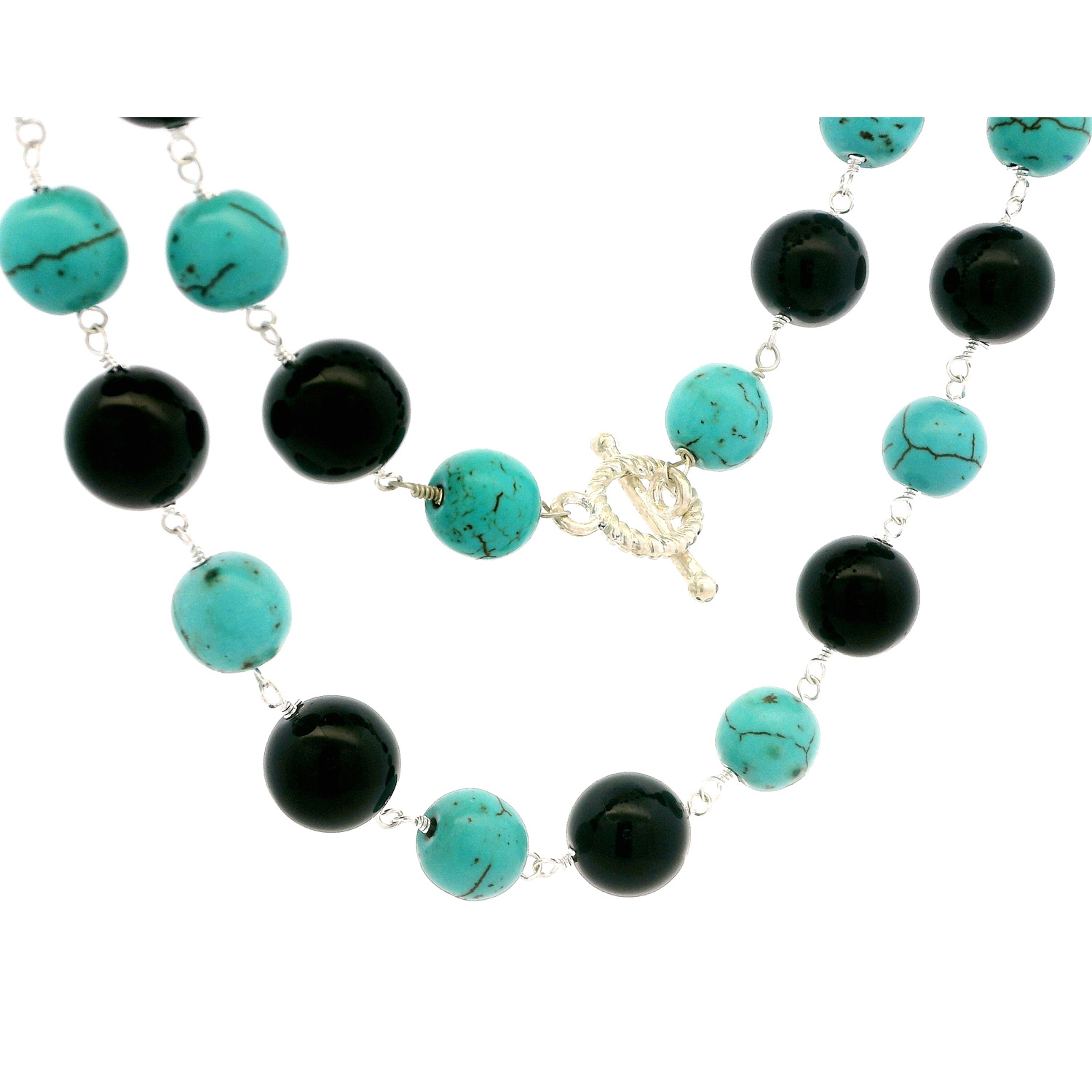 Gehna Jaipur Turquoise & Black Onyx Gemstone Knotted Chain In .925 Sterling Silver For Girls & Women CS-1230