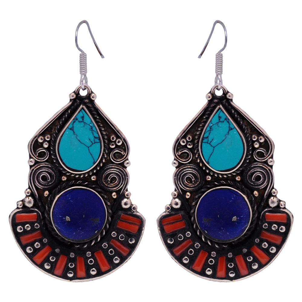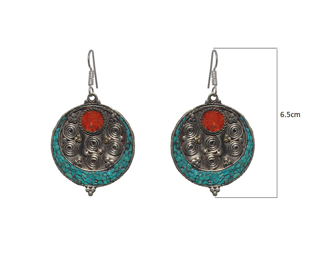 Gehna Jaipur Turquoise & Coral Gemstone Round Shaped Tibetan Earring For Girls & Women IE-1007