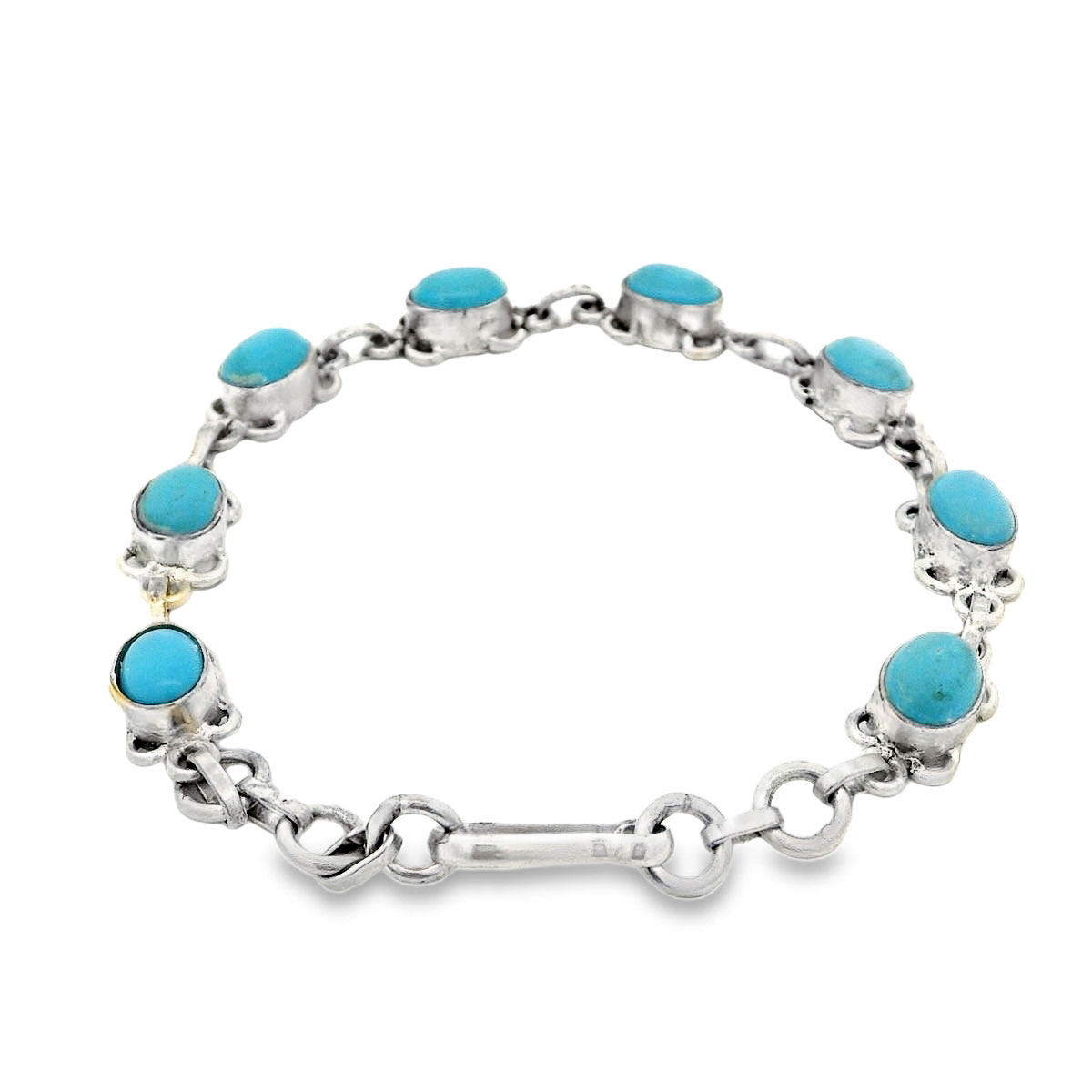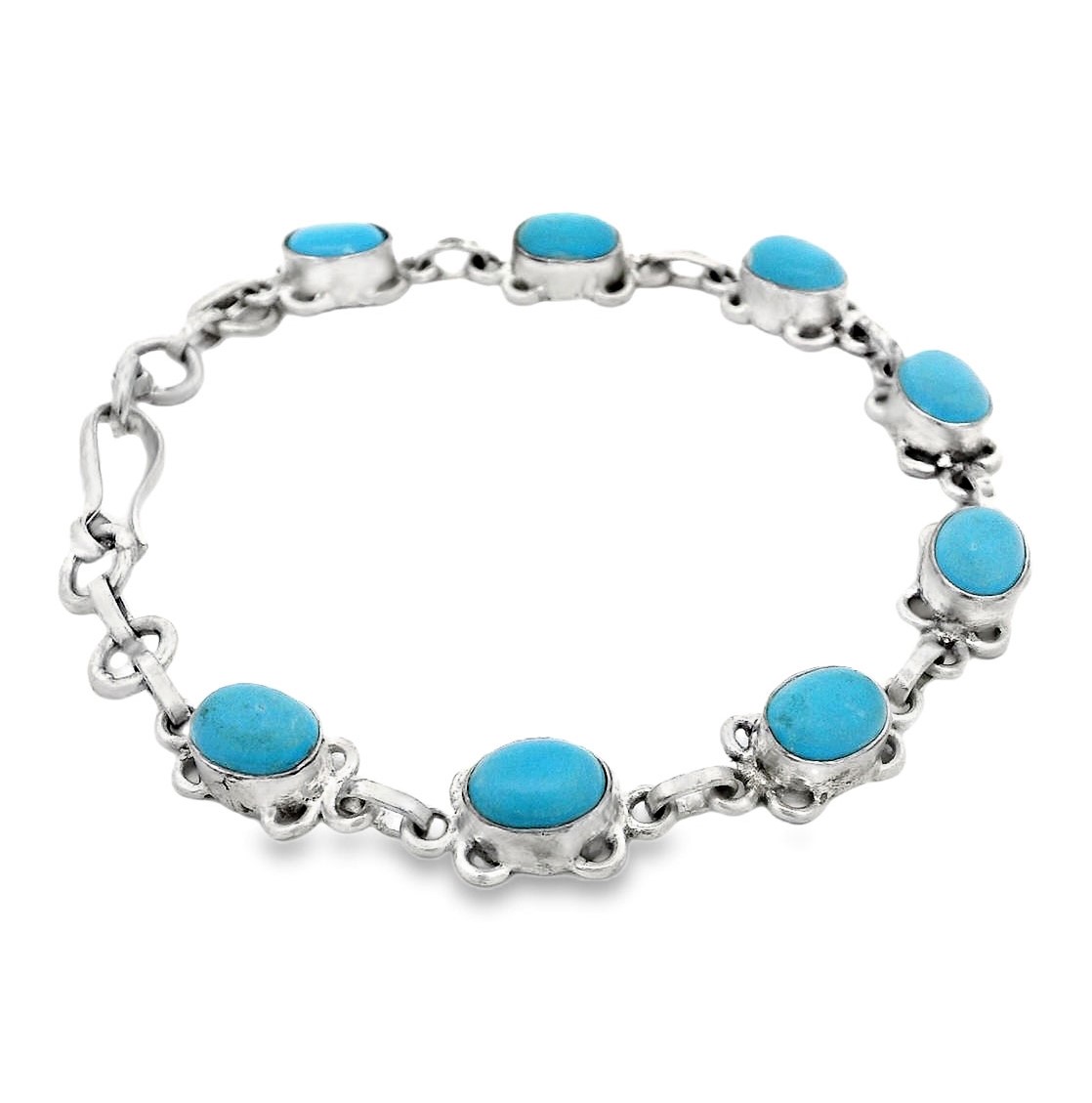 Gehna Jaipur Turquoise Gemstone Studded 925 Sterling Silver Bracelet For Girls & Women SB-1066
