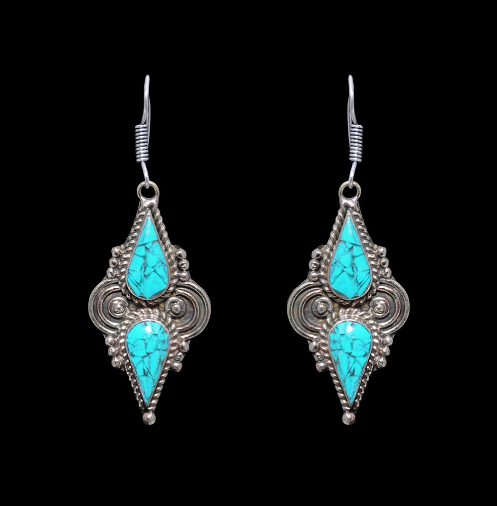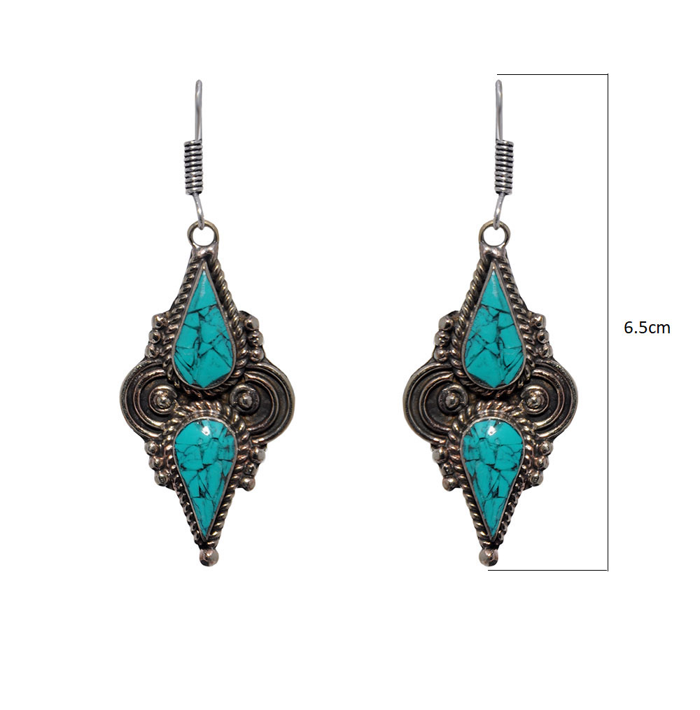 Gehna Jaipur Turquoise Gemstone Tibetan Earrings For Girls & Women IE-1008