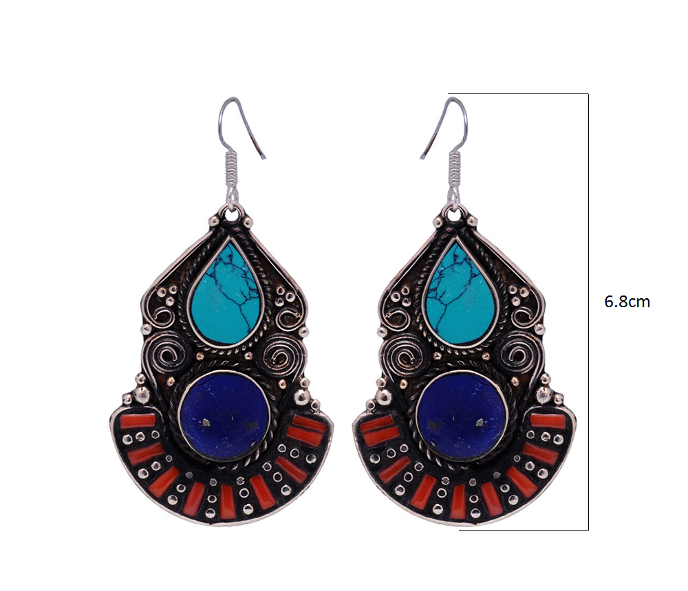 Gehna Jaipur Turquoise, Lapis Lazuli & Coral Gemstone Tibetan Earring For Girls & Women IE-1005