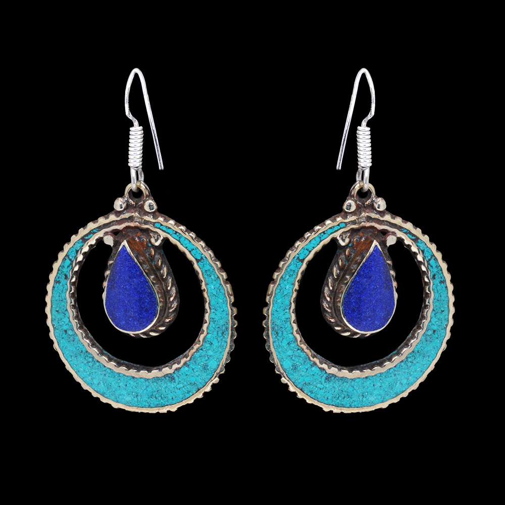 Gehna Jaipur Turquoise & Lapis Lazuli Gemstone Tibetan Earrings For Girls & Women IE-1016