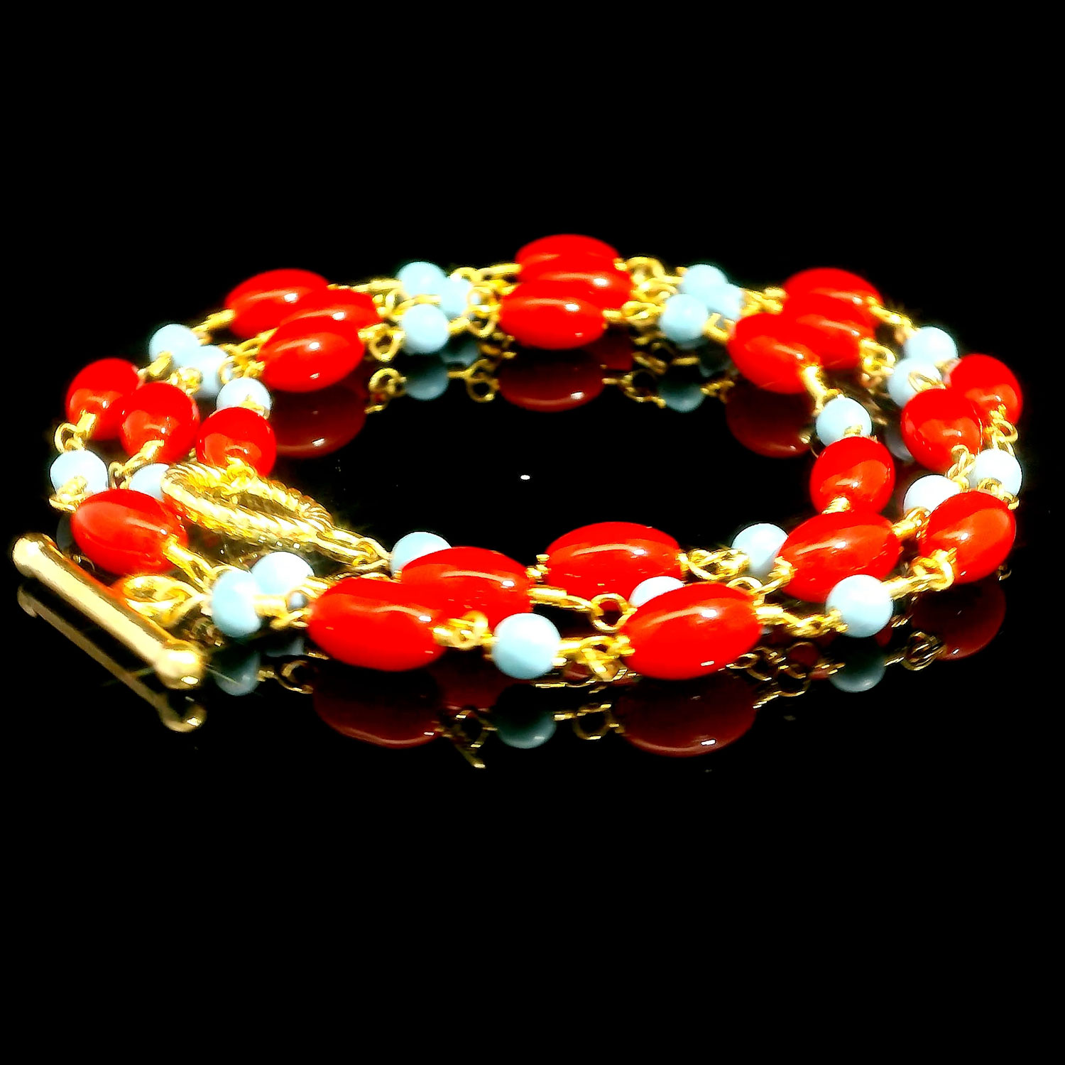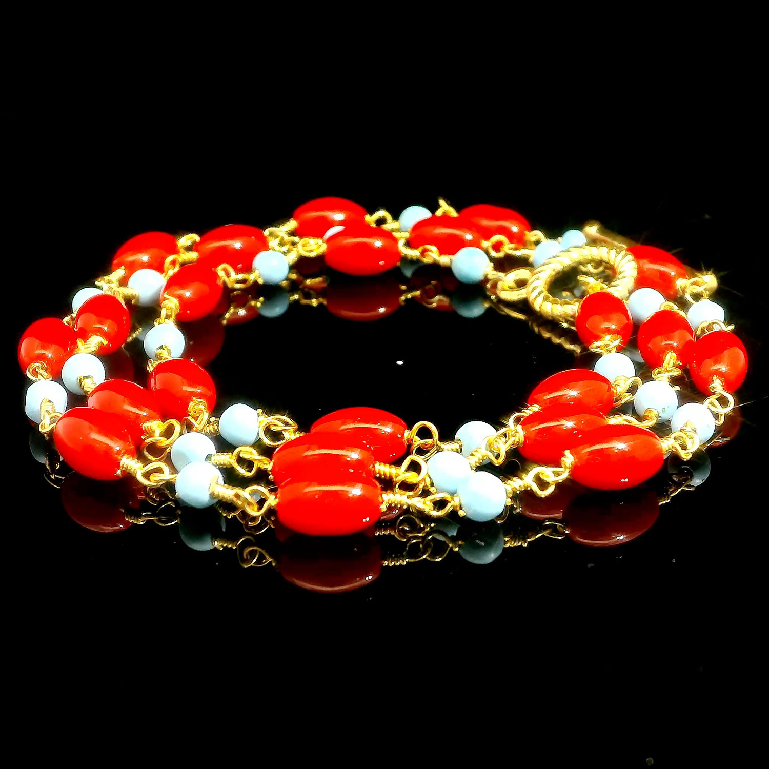 Gehna Jaipur Turquoise & Red Jasper Gemstone Oval Shape Bead Chain Knotted In Gold Plated For Girls & Women CP-1092