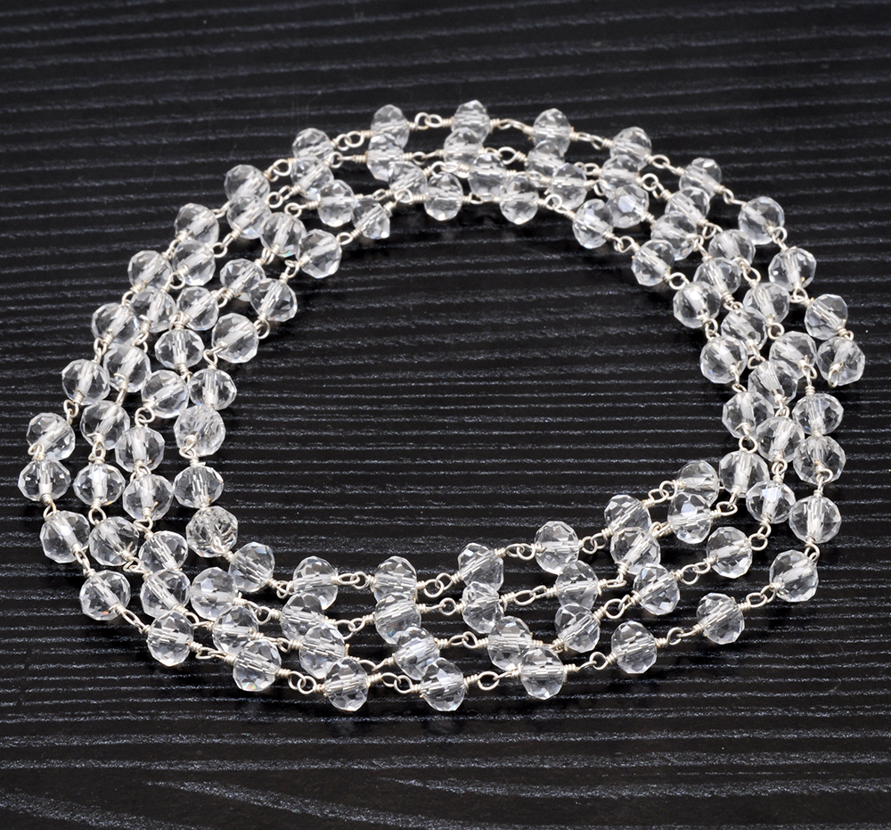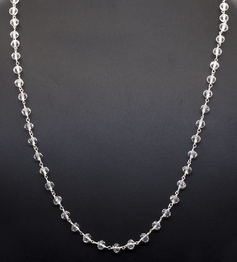 Gehna Jaipur White Color Zirconia Faceted Beads Silver Rhodium Plating Rosary Chain For Girls & Women CC-1001