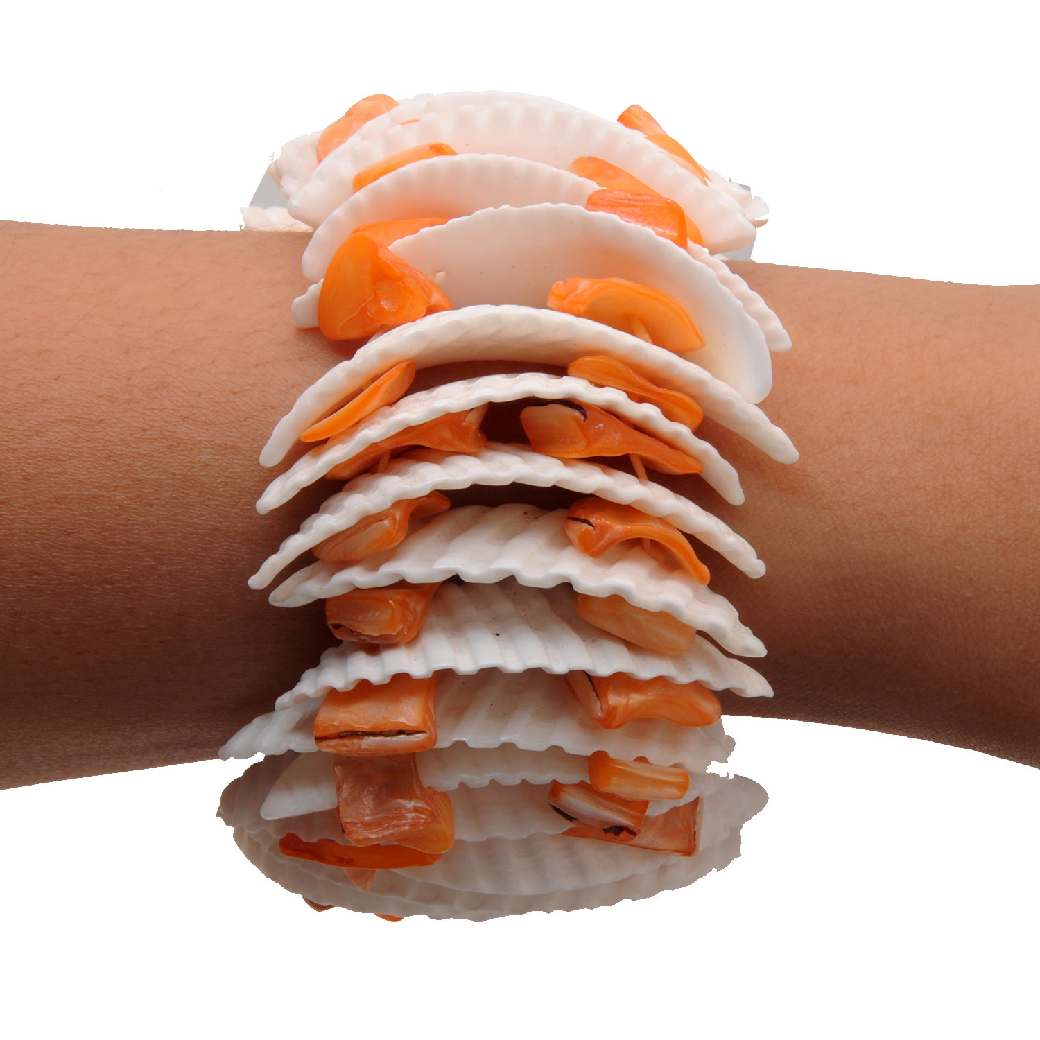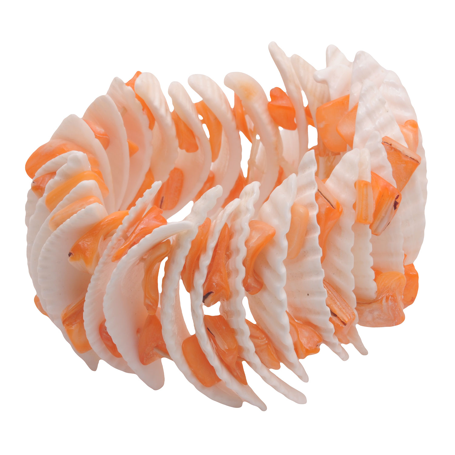 Gehna Jaipur White & Peach Color Handcrafted Sea Shell Pearl Bracelet/Adjustable Wrist Band for girls & women. A delicate, handcrafted piece combining soft pastel charm with beach-inspired allure.