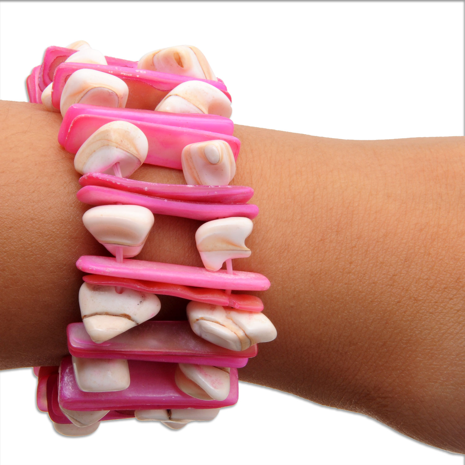 Gehna Jaipur White & Pink Color Handcrafted Sea Shell Pearl Bracelet/Adjustable Wrist Band for girls & women. Delicate and feminine, this bracelet offers seaside charm and handcrafted artistry in every detail.