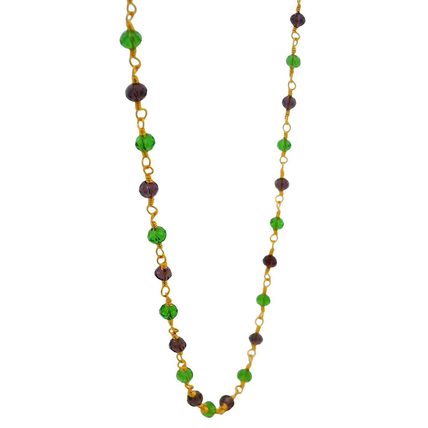 Gehna Jaipur’s Wine & Peridot Color Cubic Zirconia Beads Necklace in gold plating brings a luxurious color contrast for refined charm.