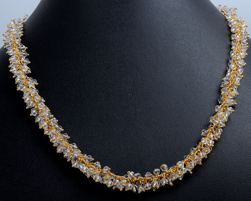 Gehna Jaipur Zirconia Faceted Beads Necklace Set Gold Rhodium Plating For Girls & Women CC-1048