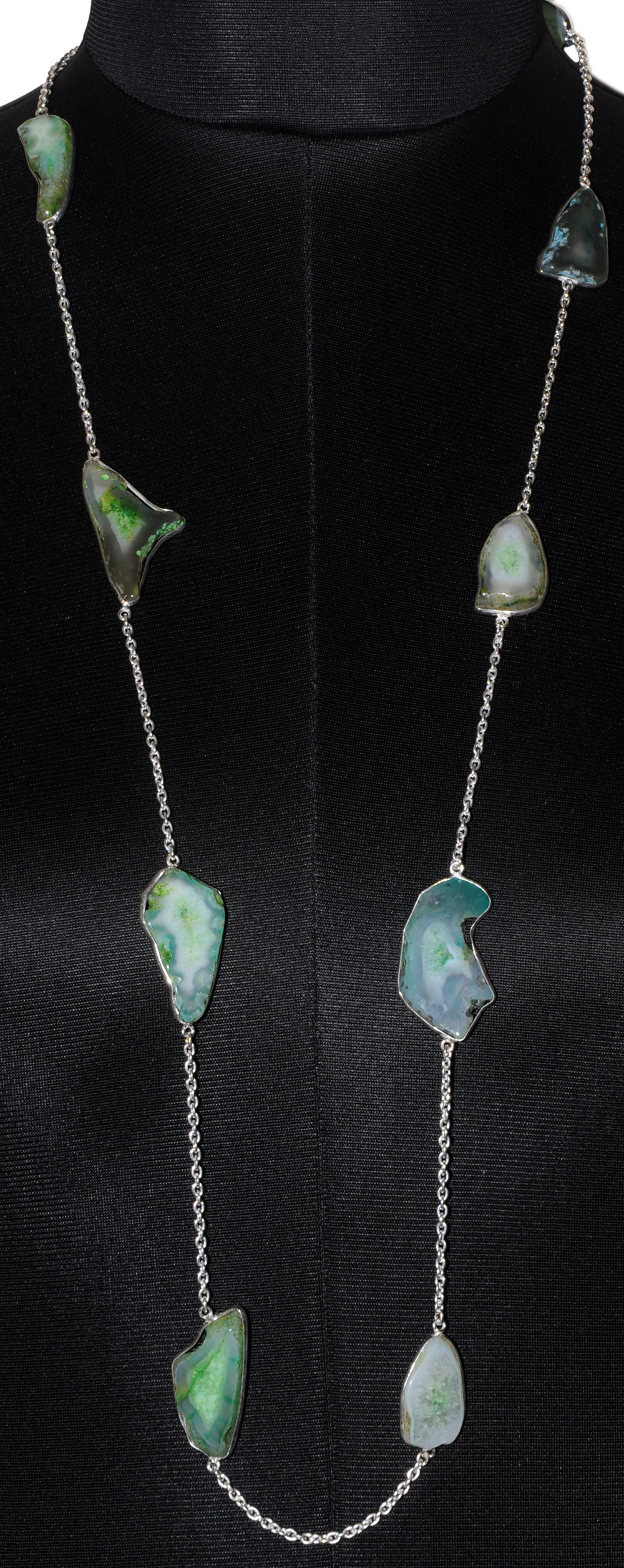 Green Agate Gemstone Studded Chain In . Sterling Silver Overlay WITH WHITE GOLD RHODIUM POLISH