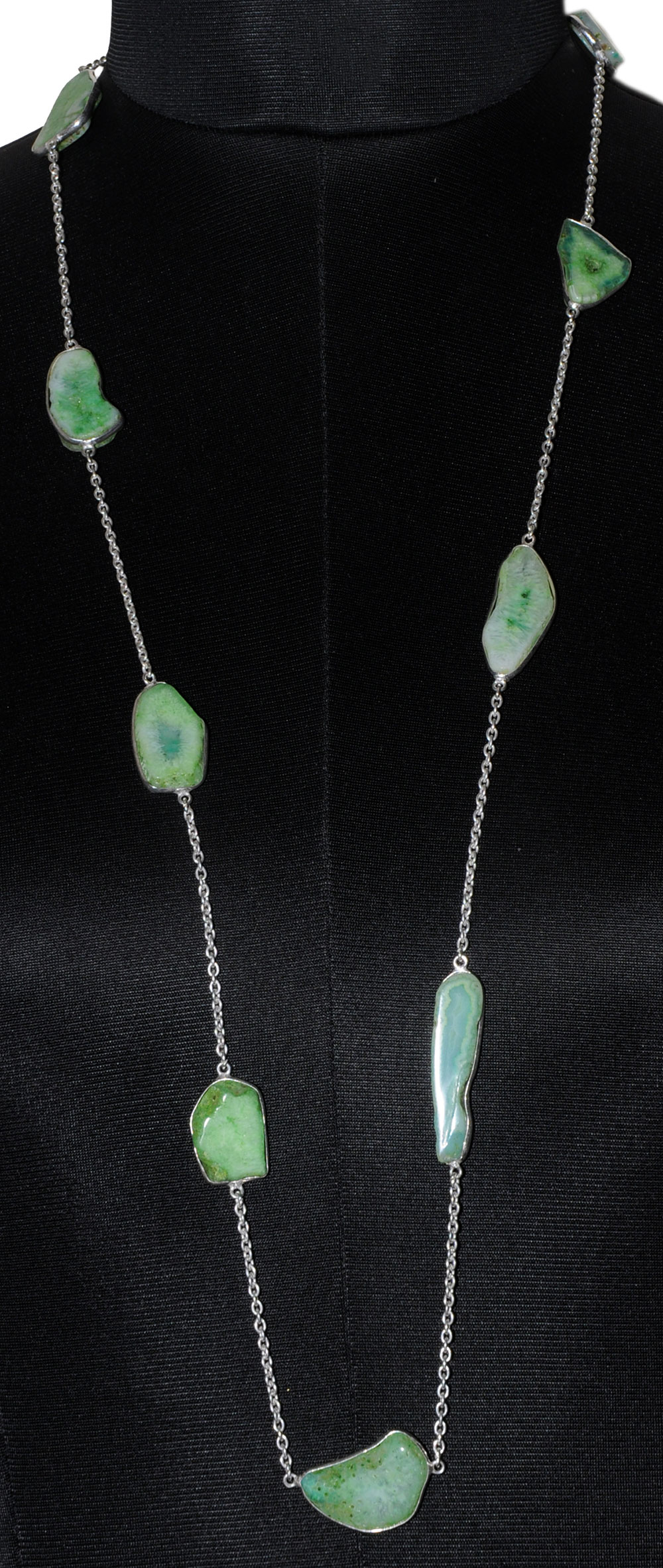 Green Agate Gemstone Studded Chain In . Sterling Silver Overlay WITH WHITE GOLD RHODIUM POLISH