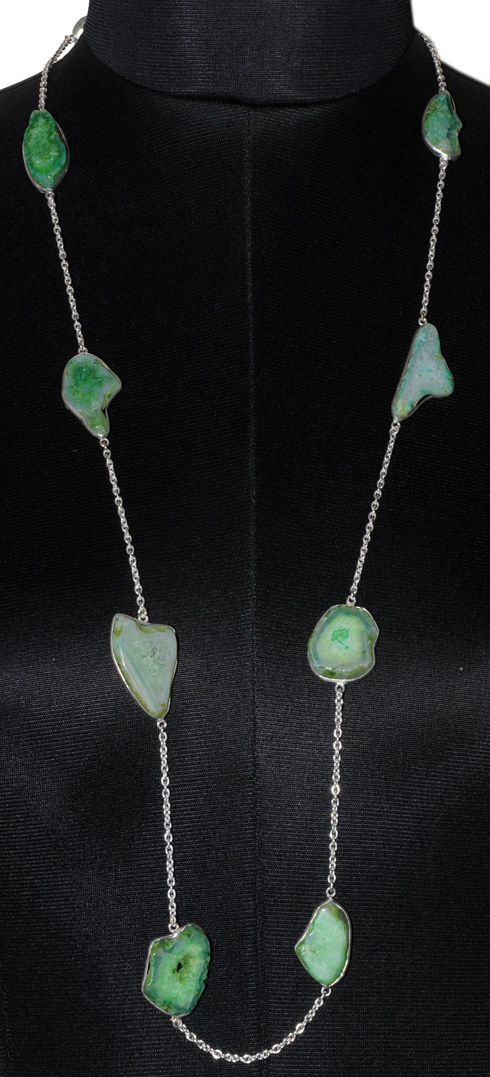 Green Agate Gemstone Studded Chain In . Sterling Silver Overlay WITH WHITE GOLD RHODIUM POLISH