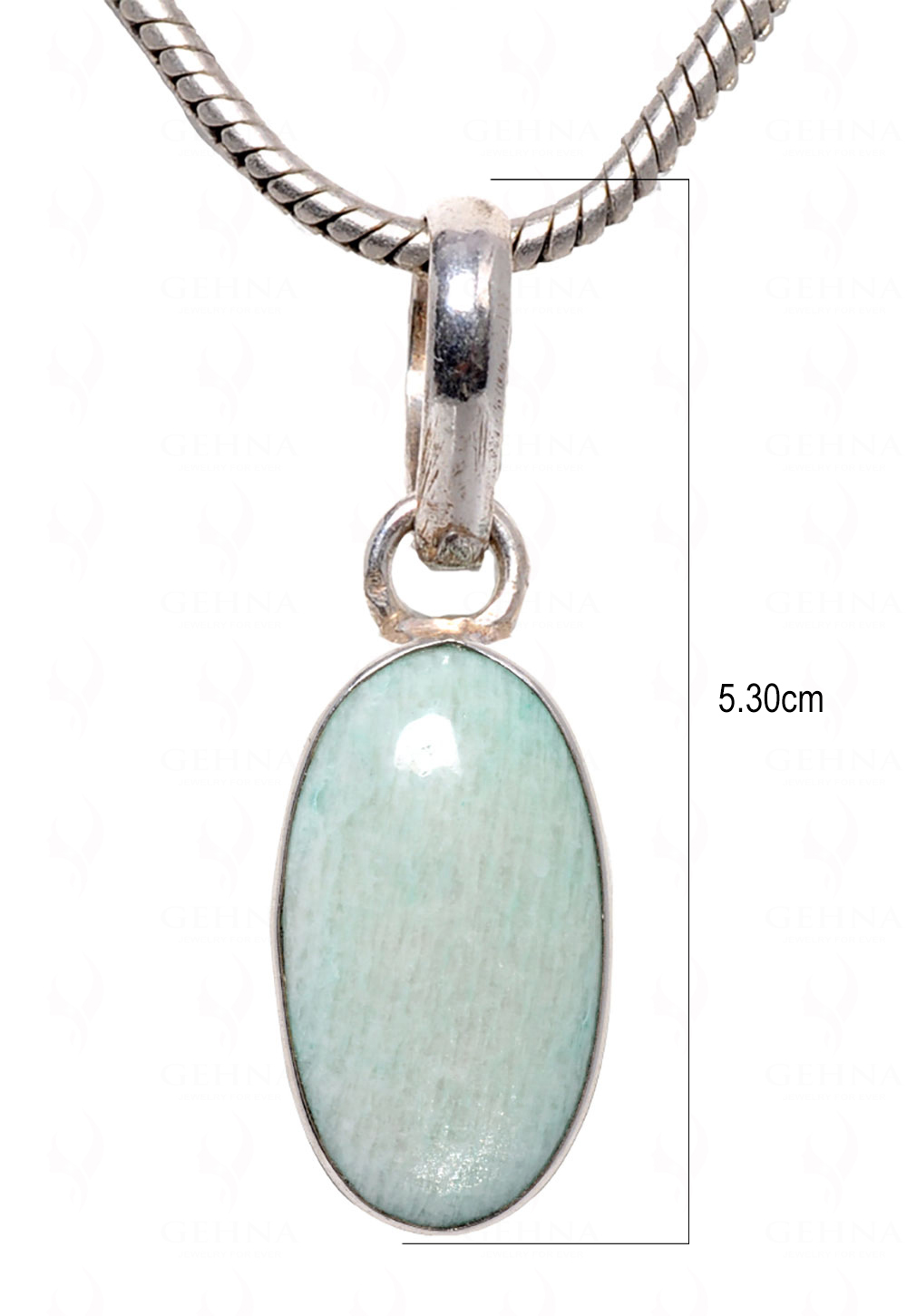Gehna Jaipur Green Aventurine oval stone studded silver plated pendant. Known for its soothing green shade, this elegant pendant adds freshness and charm to everyday outfits.
