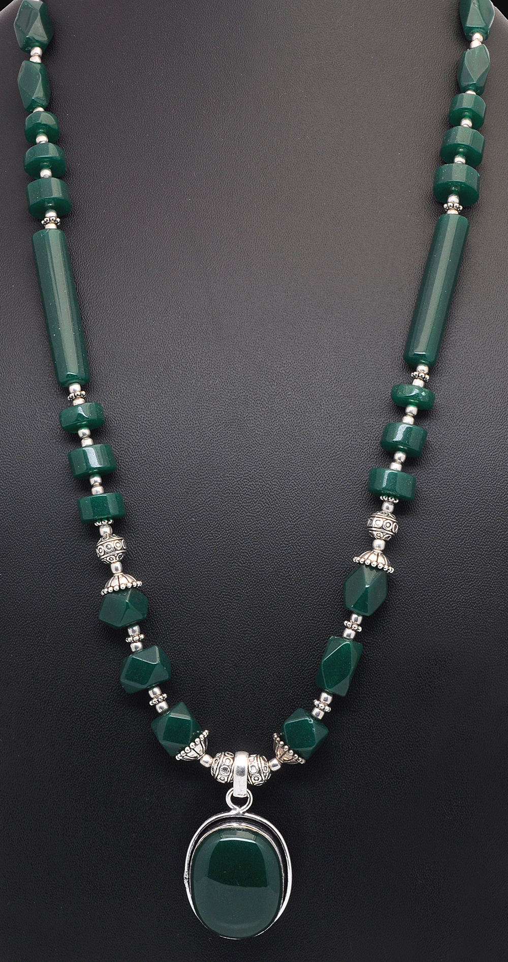 Green Jade gemstone studded necklace & earring set WITH OXIDIZED RHODIUM POLISH