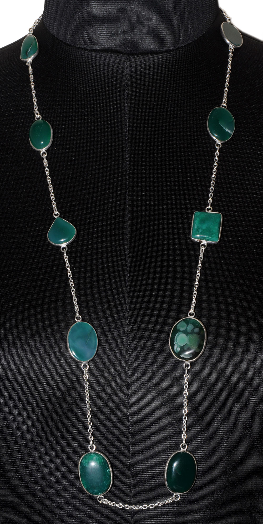 Green Onyx Gemstone Studded Chain In . Sterling Silver Overlay WITH WHITE GOLD RHODIUM POLISH