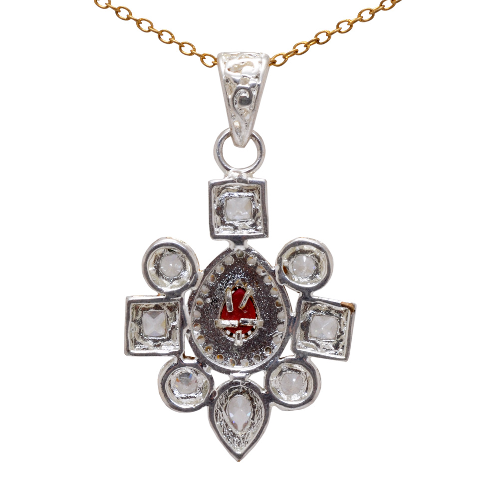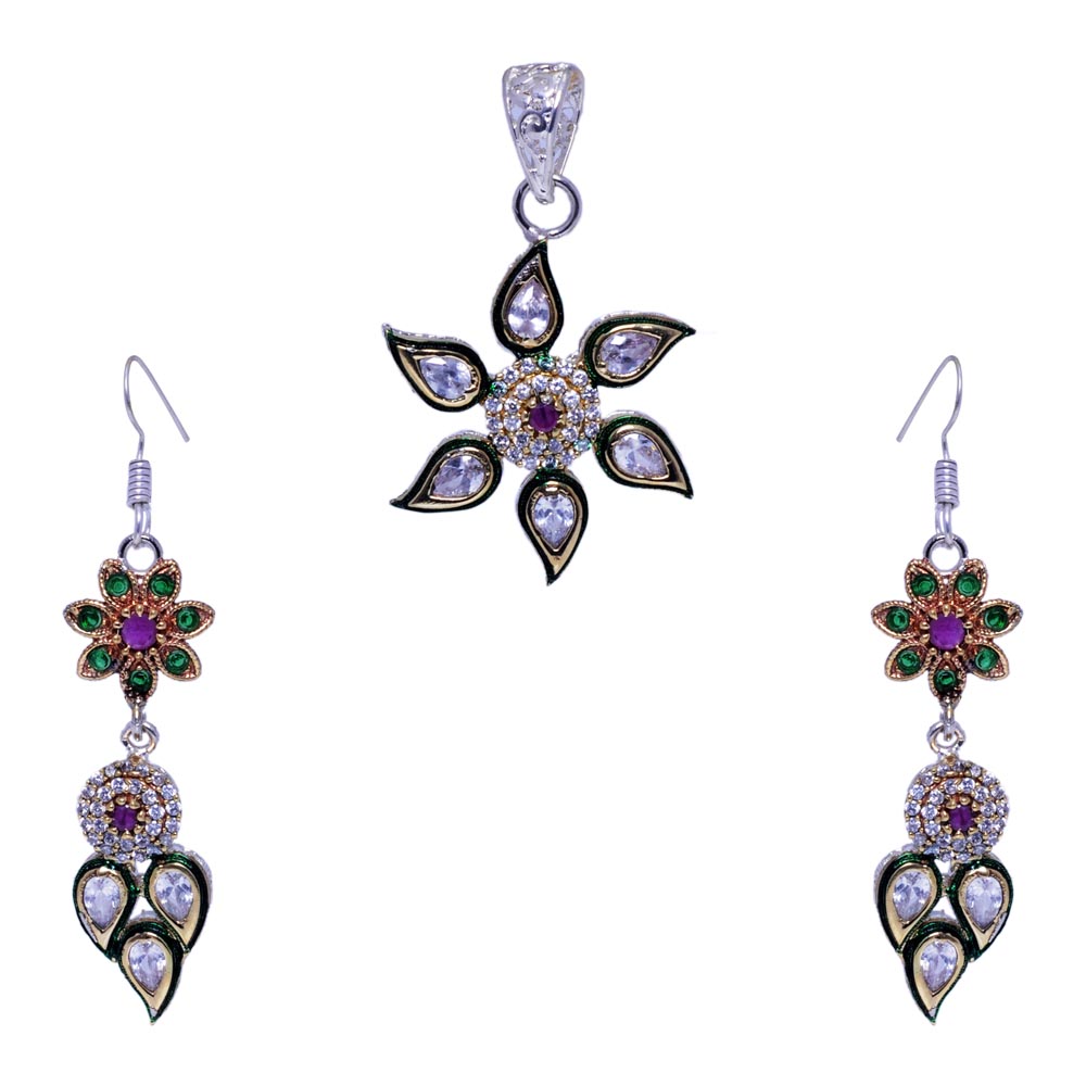 Jasper Stone Studded Pendant & Earrings Set With Enamel Work