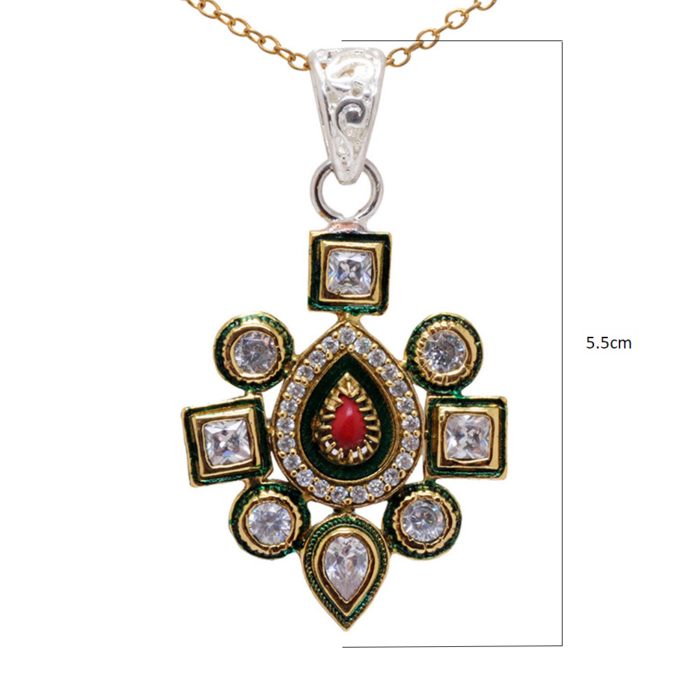 Timeless Gehna Jaipur Jasper stone pendant and earrings set, crafted with enamel detailing. Perfect for women looking for a chic yet earthy accessory to complement their style on any occasion.