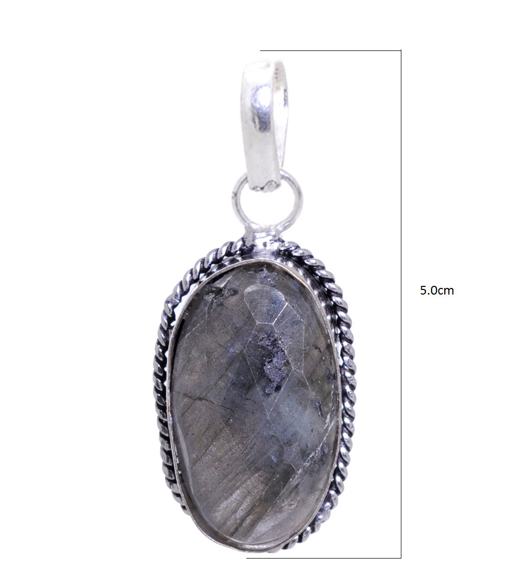 Labradorite gemstone pendant in 925 sterling silver overlay metal