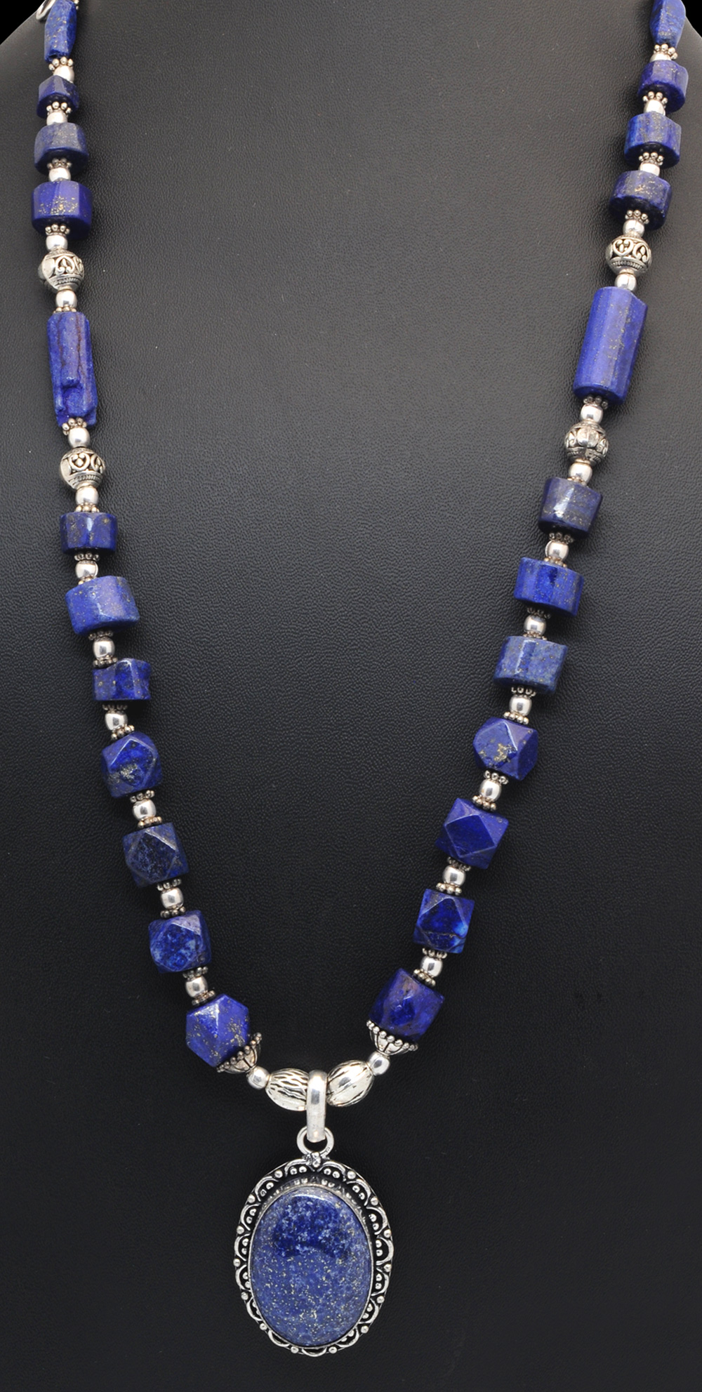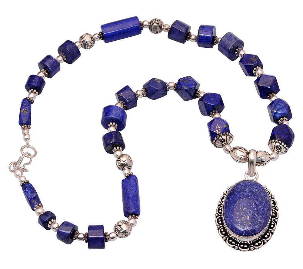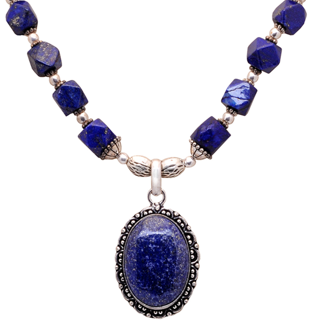 Lapis Lazuli gemstone studded necklace & earring set WITH OXIDIZED RHODIUM POLISH