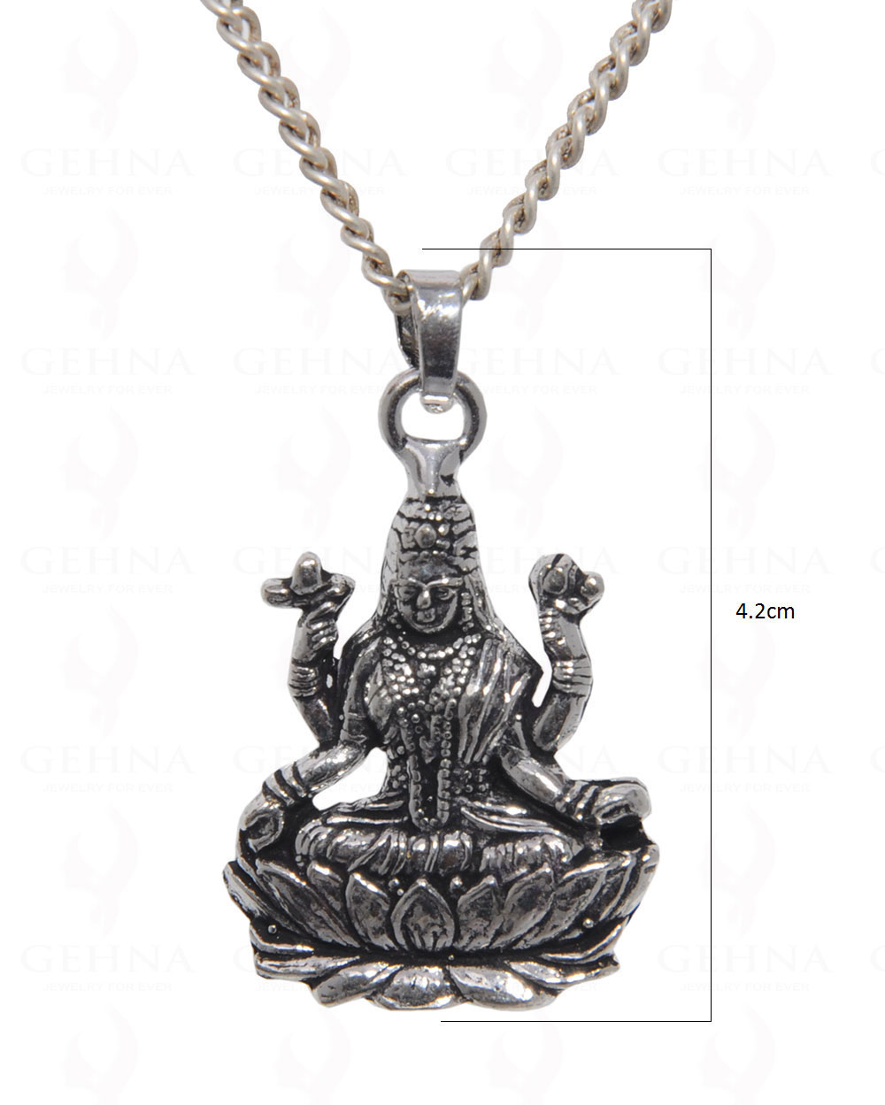 Gehna Jaipur Lord Laxmi oxidized pendant in .925 silver overlay showcases fine detailing and traditional charm. A symbol of prosperity and grace, this pendant is ideal for festive wear, pooja, or spiritual gifting.