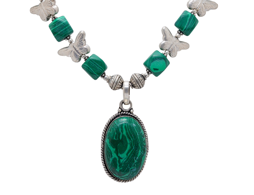 malachite bead necklace with malachite studded pendant