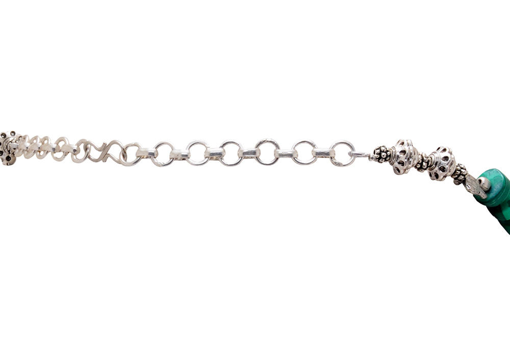 malachite bead necklace with malachite studded pendant WITH WHITE GOLD RHODIUM POLISH
