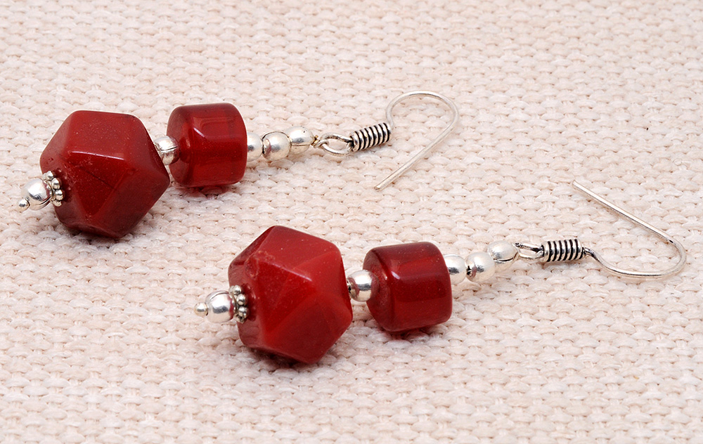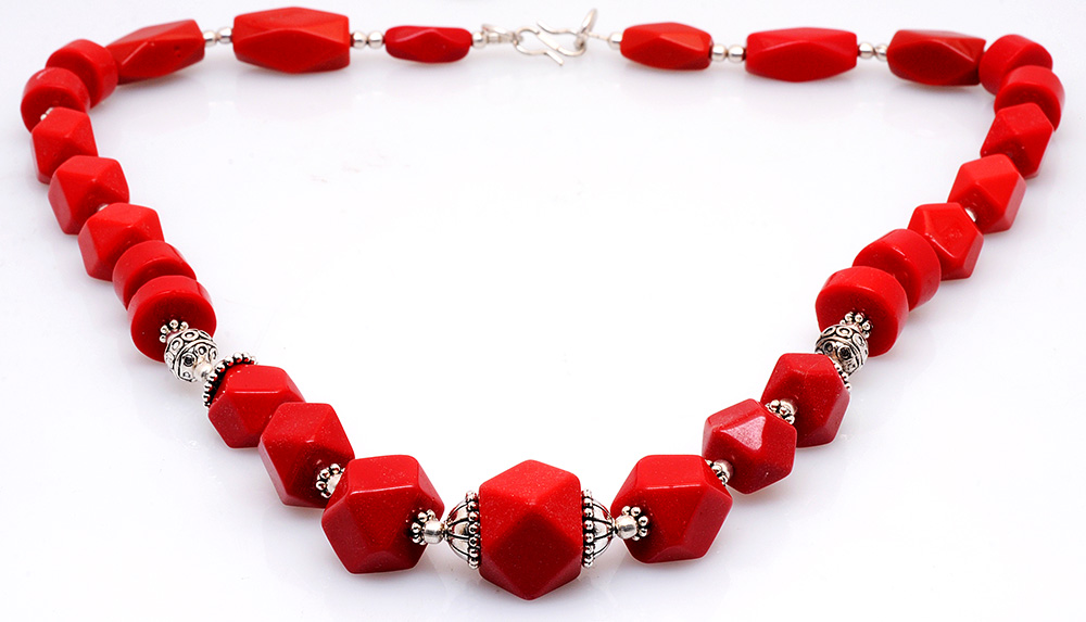 Moonga faceted gemstone studded necklace & earring set